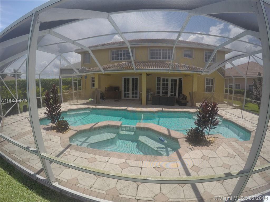 Spectacular 11046 sqf lot with expansive paved screened patio, custom tempered pool with hot tub.Gourmet kitchen with center isle breakfast station and SS appliance , oversize family room ,1st floor has full bed and bath, Grand master bedroom with Den easily convertible in a 6th bedroom. Accordion shutters and more.