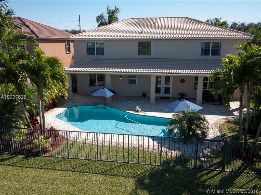 Spectacular 2005 waterfront pool home in resort-like Isles of Weston. 5 BR, 4 Bath, huge loft, 3 car garage. Gorgeous water, pool views fm most rooms. Newer pool, fenced tropically landscaped yard, extended covered patio to enjoy paradise 24/7. New dual zone Trane A/Cs. Fully upgraded kitchen: granite, top cabinetry, stainless steel. Huge water view master suite, crown molding, alarm, much more. Exclusive manned-gated community, extensive amenities. Ideal location, walk to the top Weston schools.