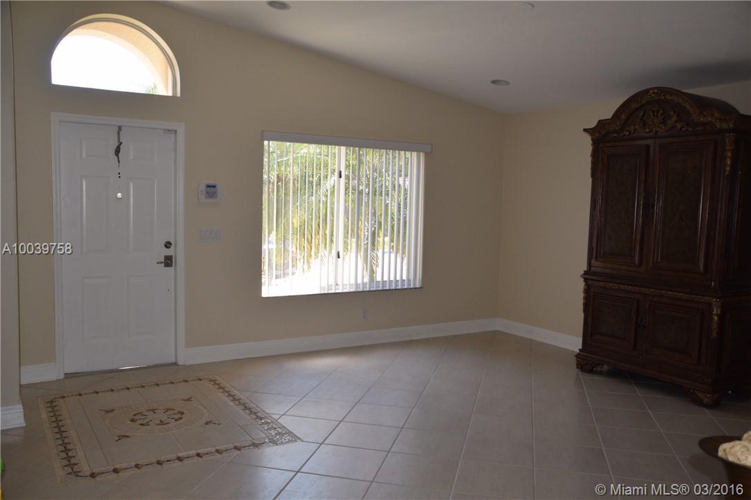 3BED/2BATH HOUSE. BEAUTIFULLY designed with lots of upgrades. Carpet in guest bedroom, Tile throughout the home, and Wood laminate in the master bedroom. NEW KITCHEN WITH HIGH WOOD CABINETS, WALKING CLOSET, ACCORDION HURRICANE SHUTTERS, HIGH CEILING. Extraordinary community. LOW MAINTENANCE $235 PER QUARTER.