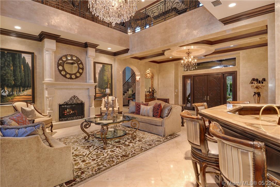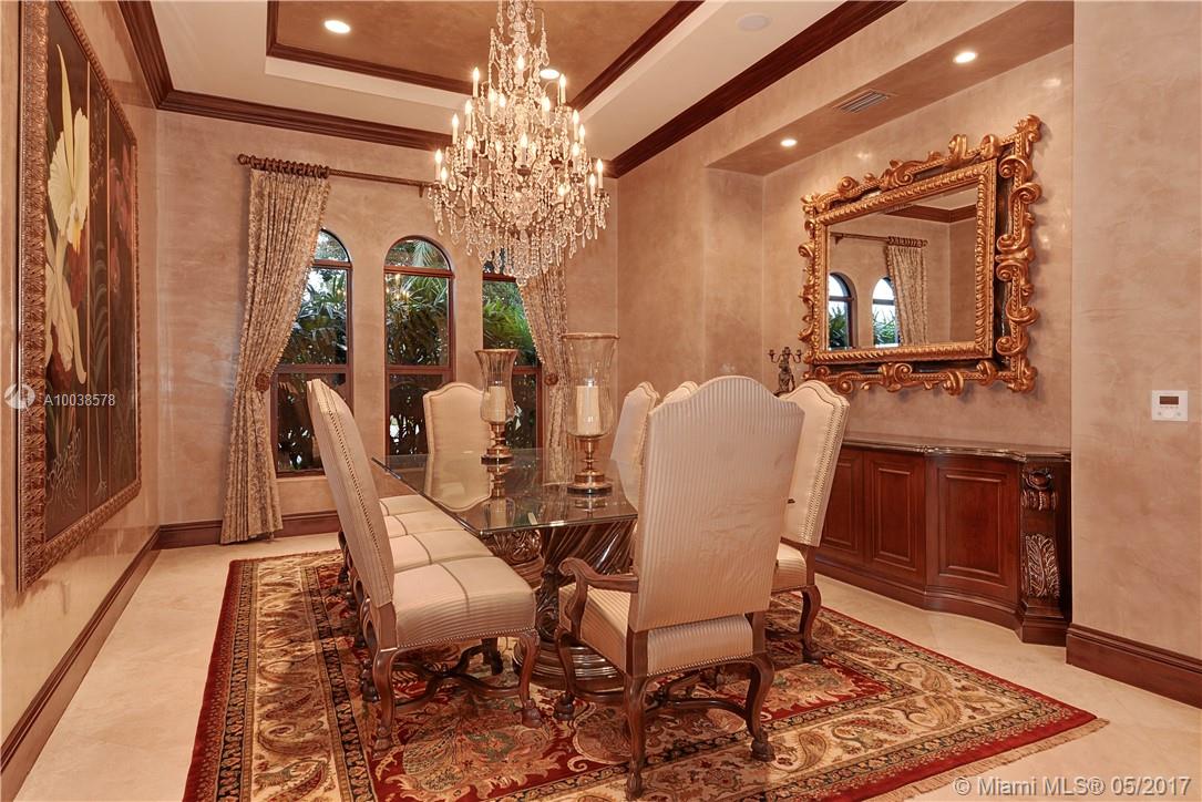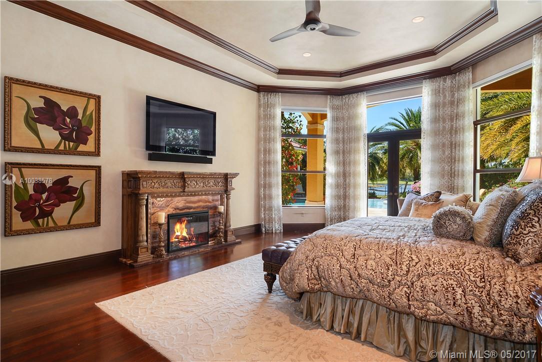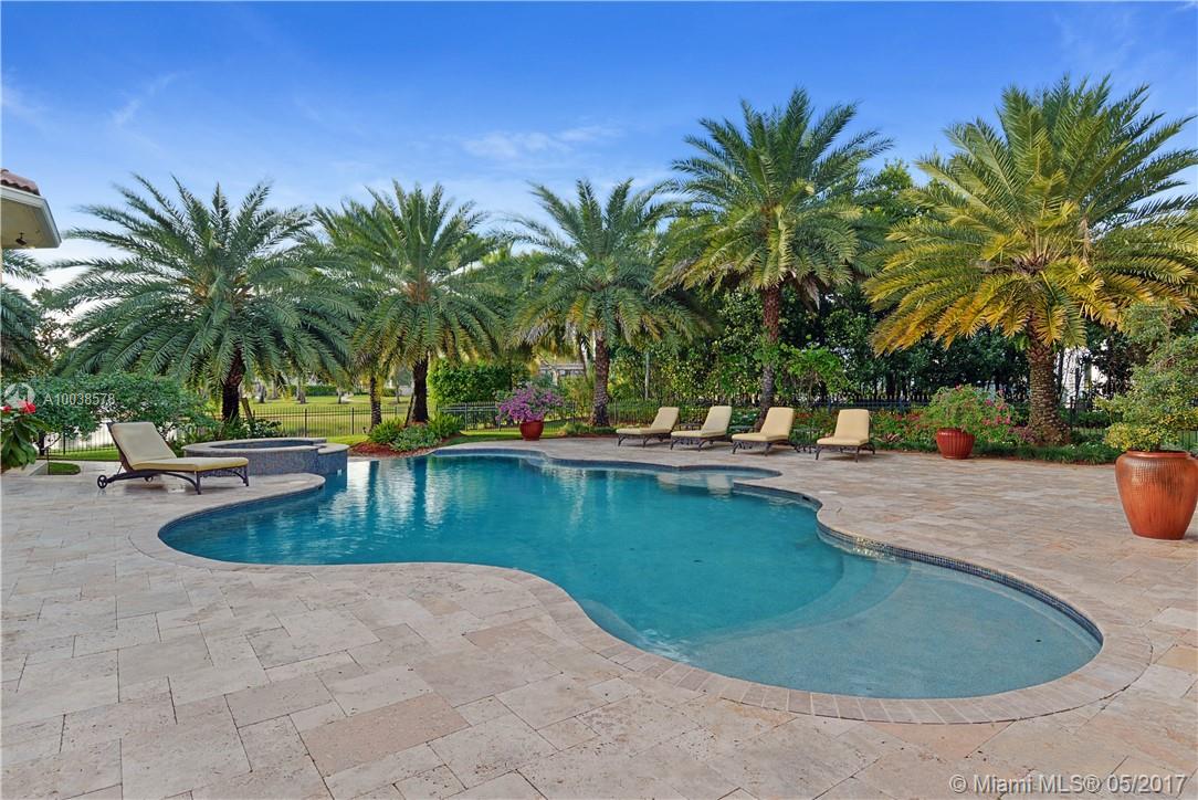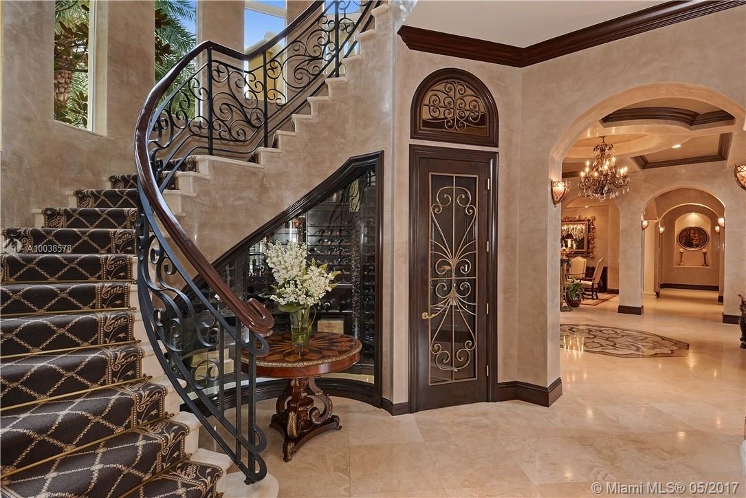 Exquisite custom built two story waterfront home on a private lot with lavish tropical landscaping. Features include an impressive grand foyer entry and formal living room with fireplace, gourmet kitchen, curved glass wine cellar, theater, billiard room, walk-in humidor with cigar / poker room. High end finishes include Venetian plaster walls, faux painted coved and coffered ceilings and custom millwork throughout. Free form infinity edge pool and spa, large patio with outdoor summer kitchen. A must see!