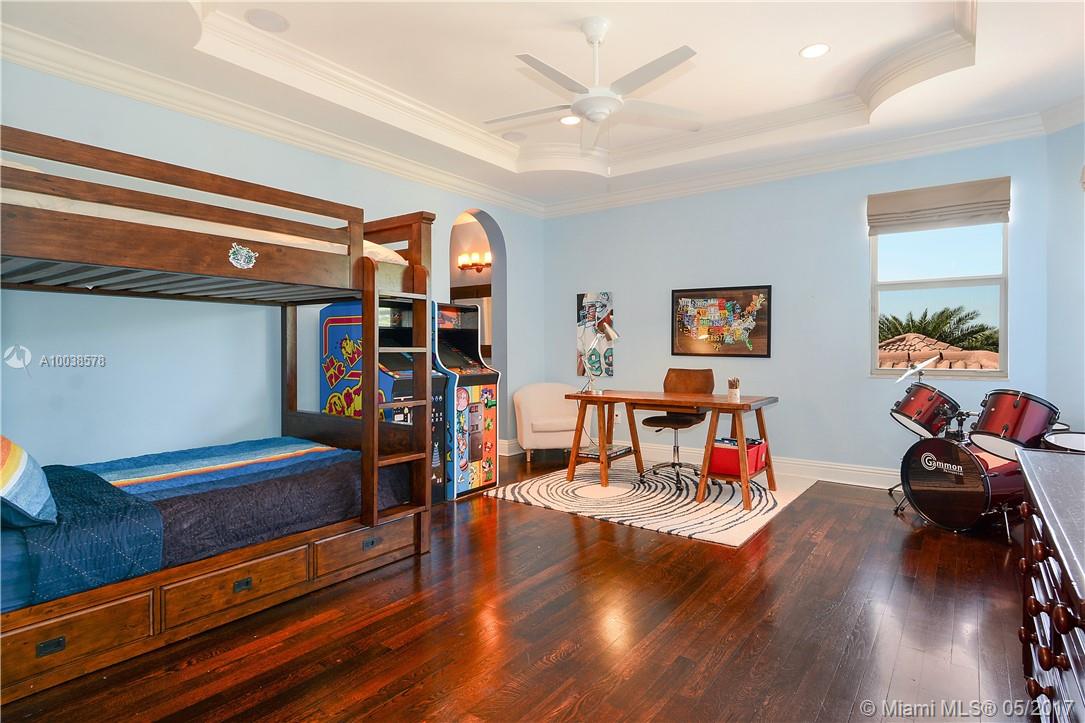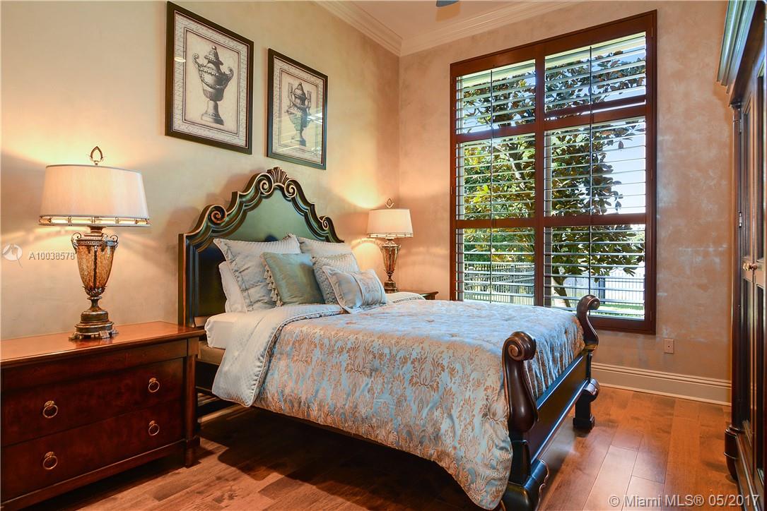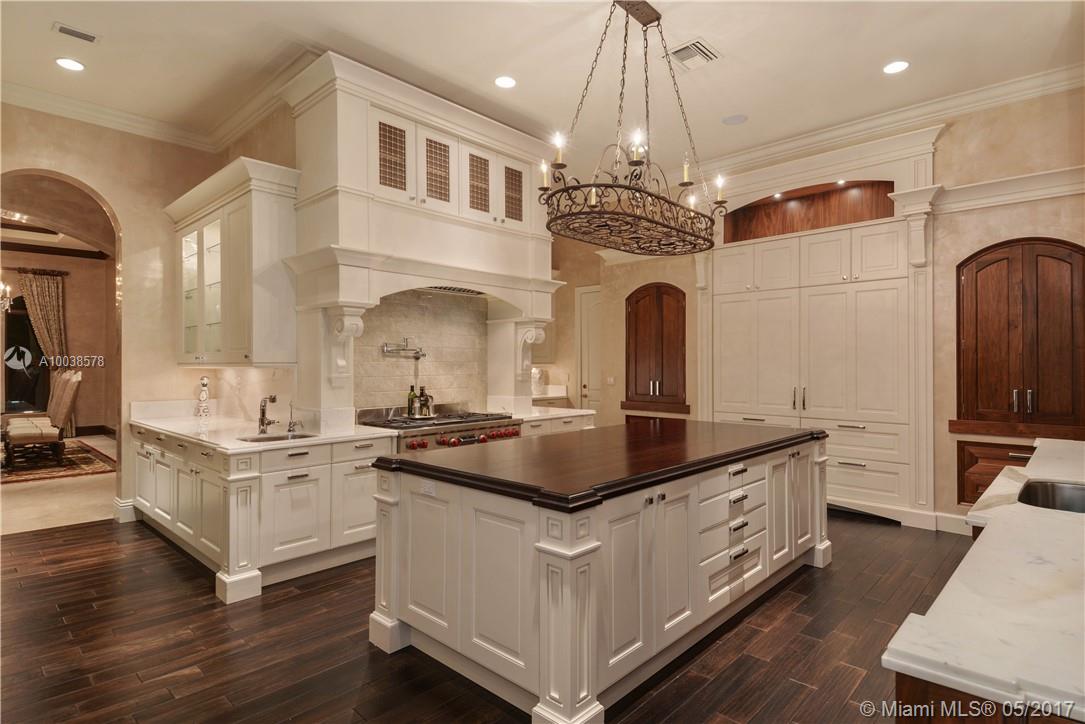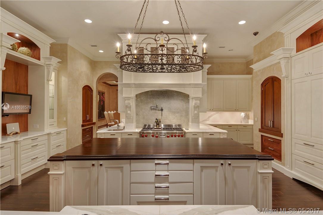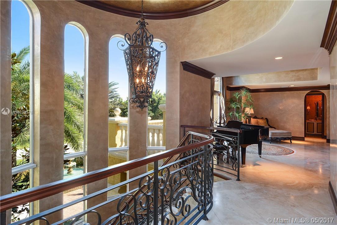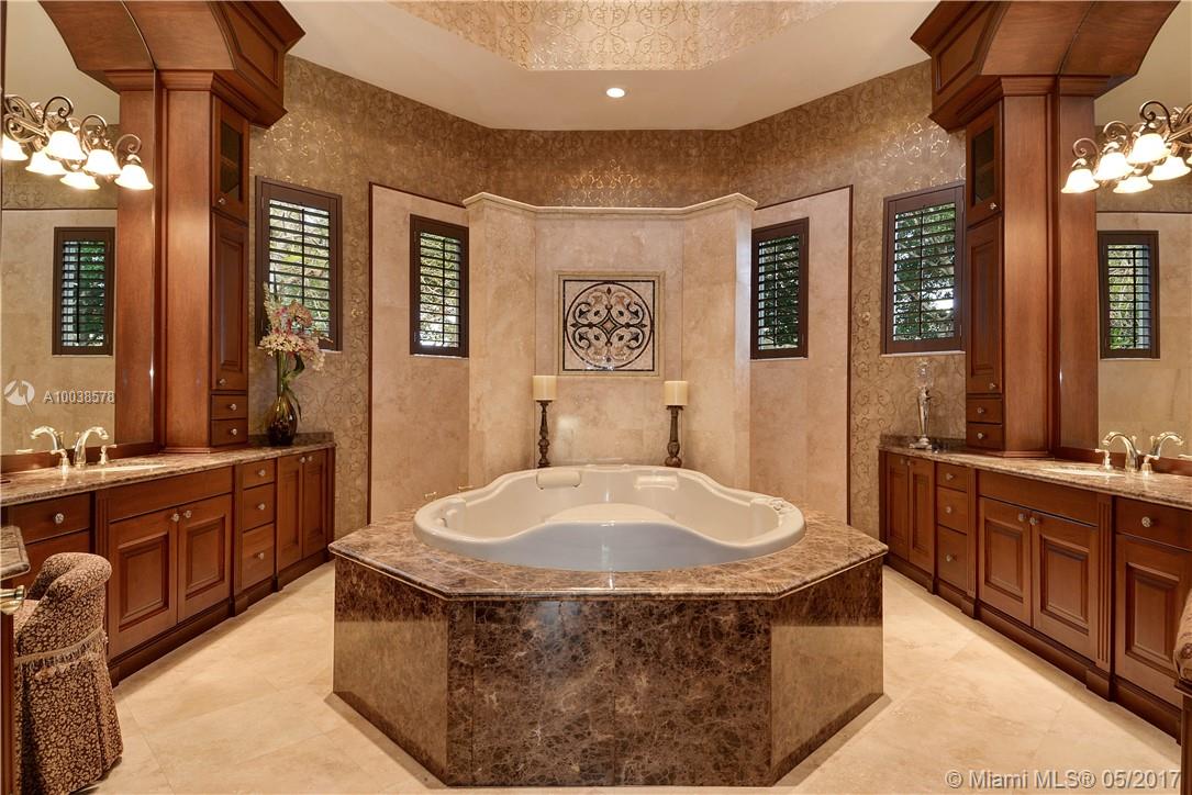 Exquisite custom built two story waterfront home on a private lot with lavish tropical landscaping. Features include an impressive grand foyer entry and formal living room with fireplace, gourmet kitchen, curved glass wine cellar, theater, billiard room, walk-in humidor with cigar / poker room. High end finishes include Venetian plaster walls, faux painted coved and coffered ceilings and custom millwork throughout. Free form infinity edge pool and spa, large patio with outdoor summer kitchen. A must see!