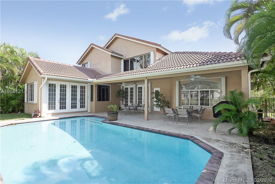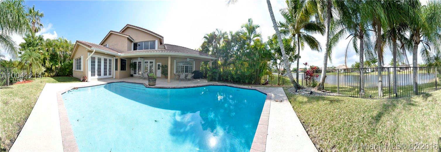 Weston Hills home featuring 5 bedrooms, 3 full baths, 2 car garage with pool on a lake front lot. Great floor plan with master bedroom + 1 room on the 1st floor. Open and bright living room area. Great kitchen and family room areas with access to the pool and patio. 2 newer A/C units. Roof replaced 2005. Home is its original condition but very well maintained, great for a buyer that is looking for a home to upgrade. Accordion Shutters and fenced backyard.