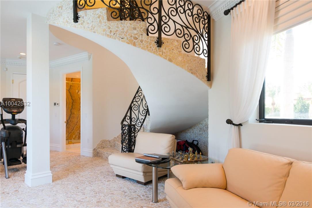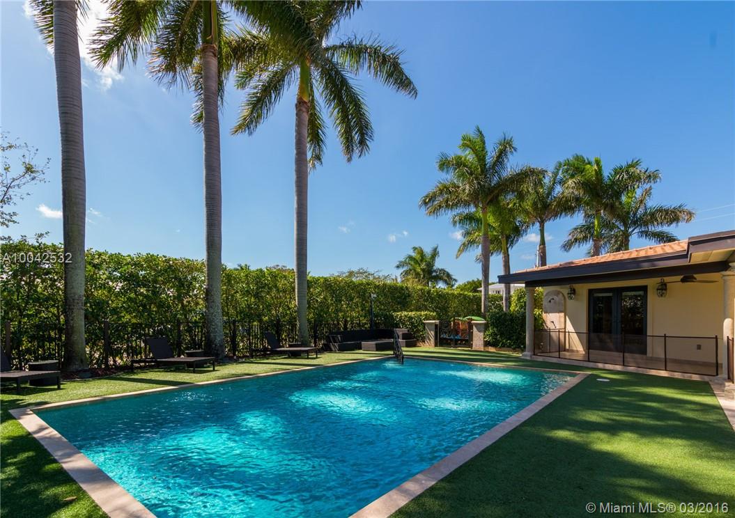 Best of Bay Harbor Islands. This beautifully finished home is situated on a double lot, boasting exquisite grounds, tennis court, full sauna/gym, and stunning infinity edge pool. 6/6.5 home features a spacious living areas, Viking Professional kitchen, onyx and marble floors throughout, and over 500k worth of Crestron sound/security systems. Massive master suite and large bedrooms.