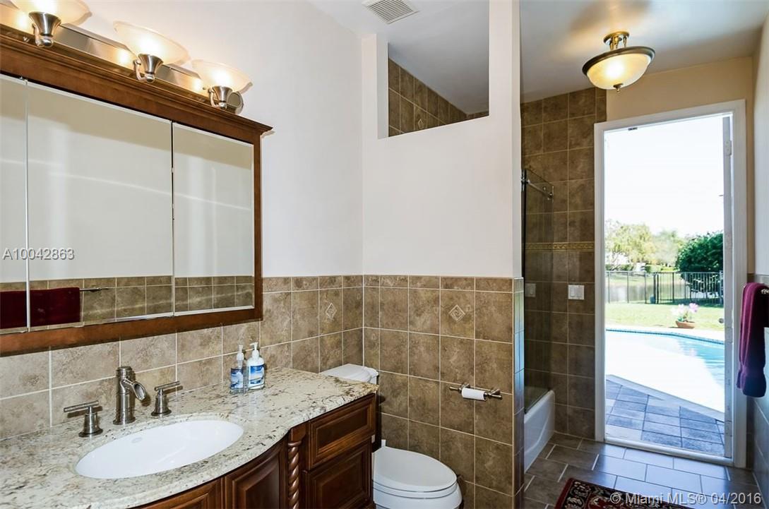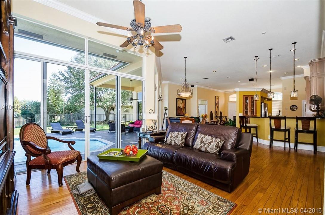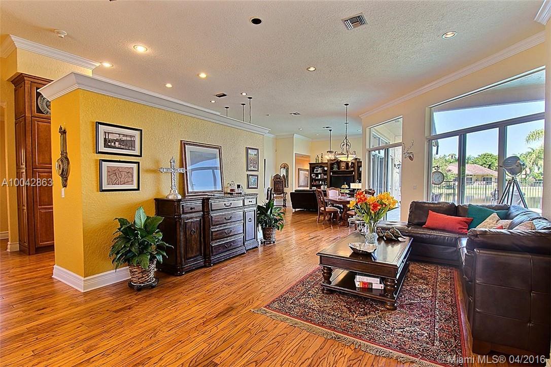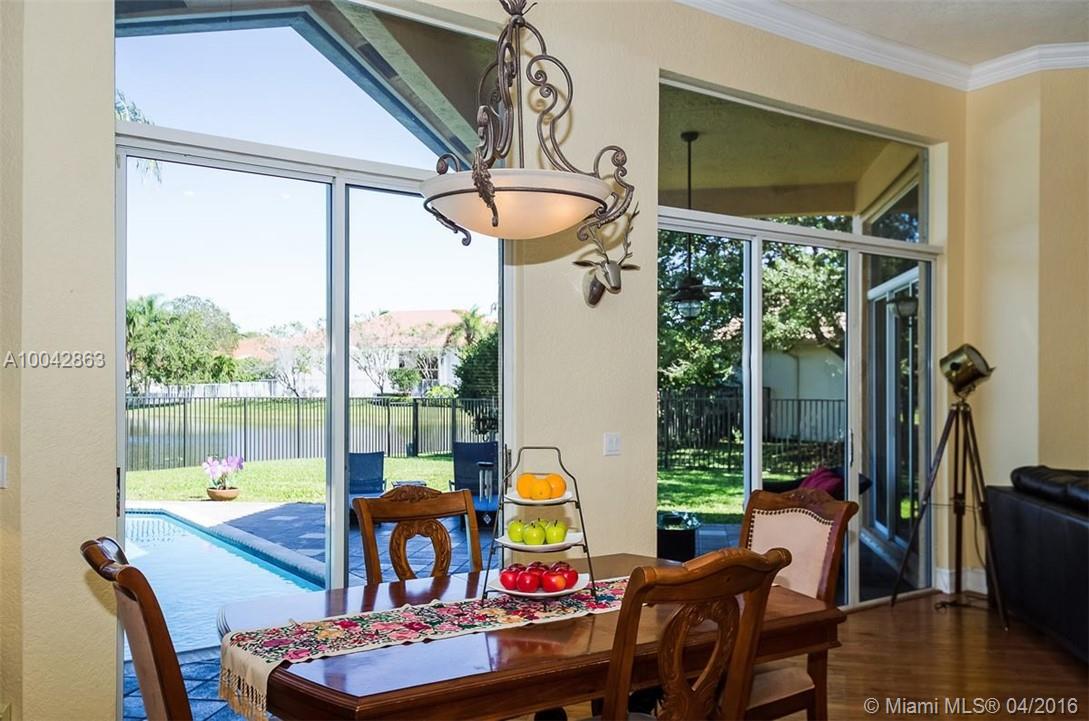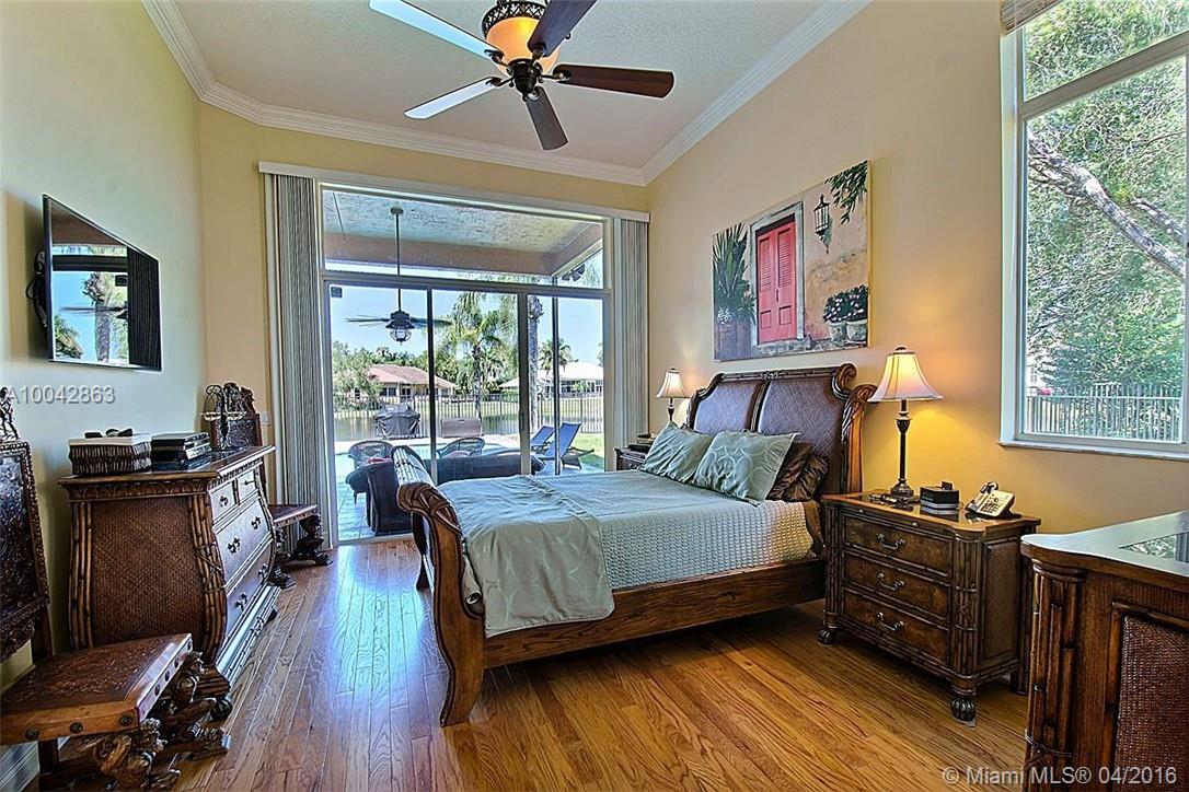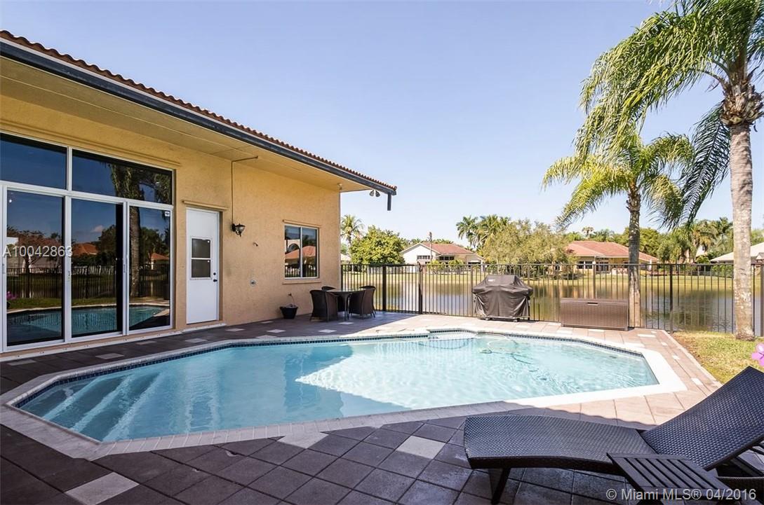 Magnificent Weston Hills 5 bed/3 bath home plus den/office. Tastefully updated with real wood floors & crown mouldings; gourmet kitchen - granite counter tops; expansive ceilings with open floor plan overlooking large pool with tranquil lake views. Extra large lot on secluded cul-de-sac in exclusive gated community. New roof in 2010. 2 separate AC units 2006 & 2010. Minutes from country club and golf course. Renowned, top rated Weston public school system.