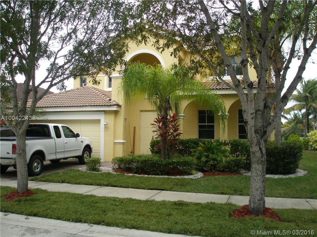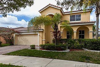 WOW! What a View! Wonderful Weston Waterfront! 5 Large Bedrooms, 4 Full Baths, two story design. Featuring open kitchen and family rooms, formal living and dining rooms plus an ex/large utility room. Separate first floor bedroom/office or den with full bath. Terrific outdoor space features a screened pool/patio overlooking an extra wide lake view. Local Weston schools all A+ rated. Community resort styled recreation area that you must see to believe 3 pools, water slide, party area miniature golf & more!