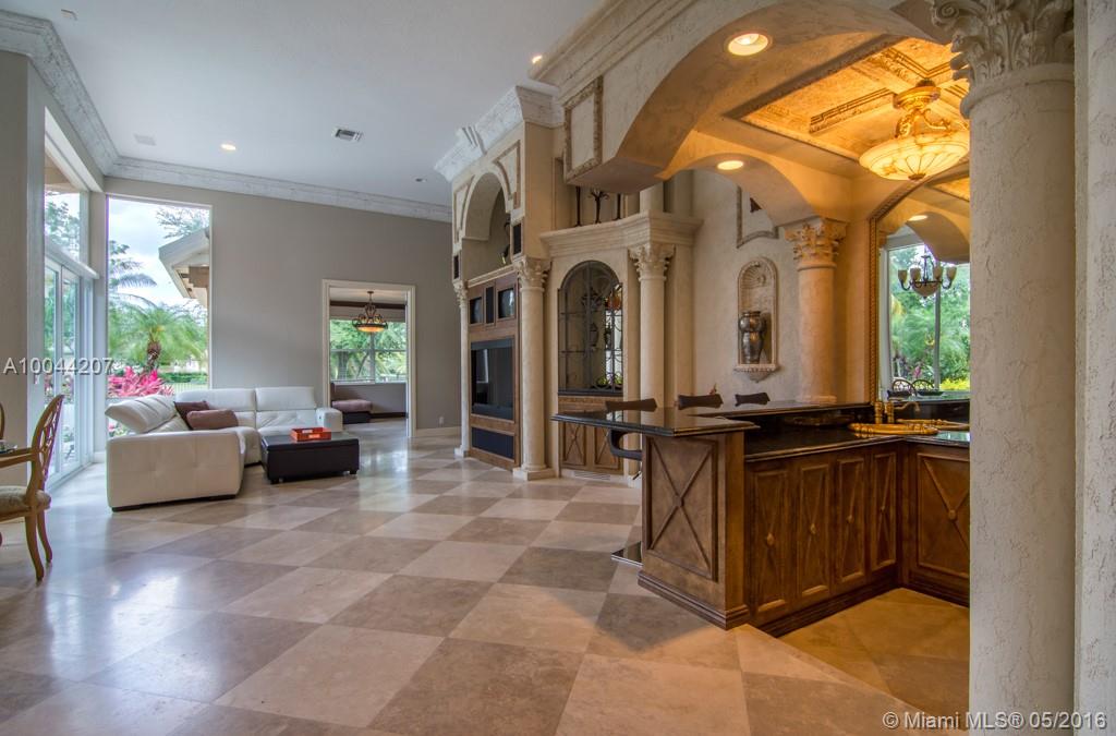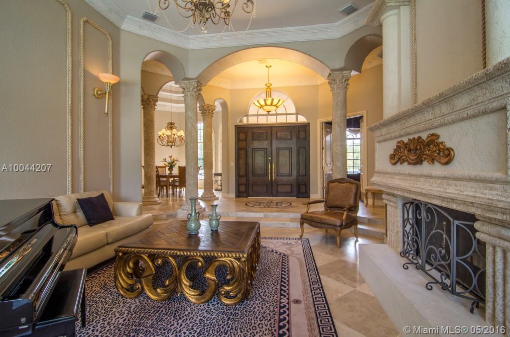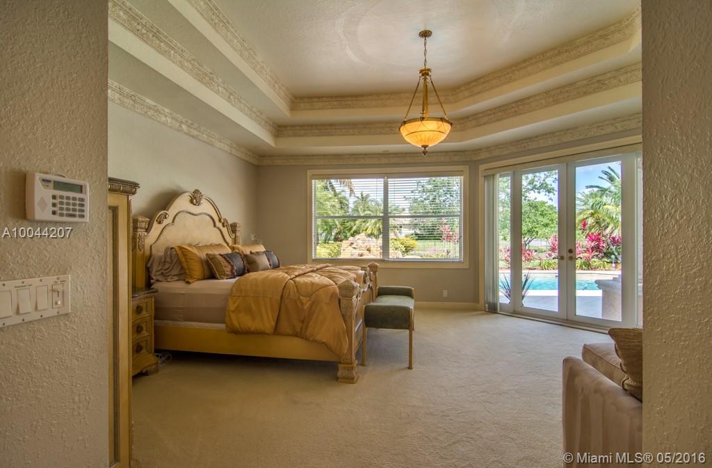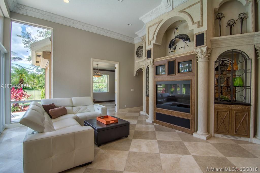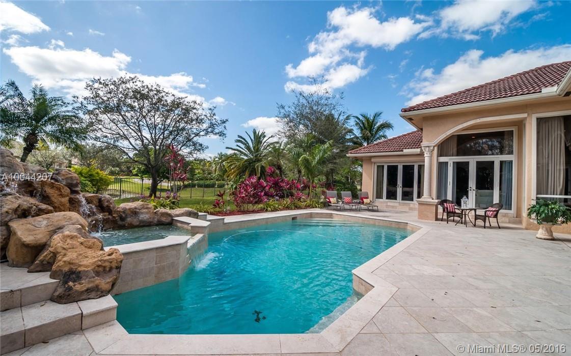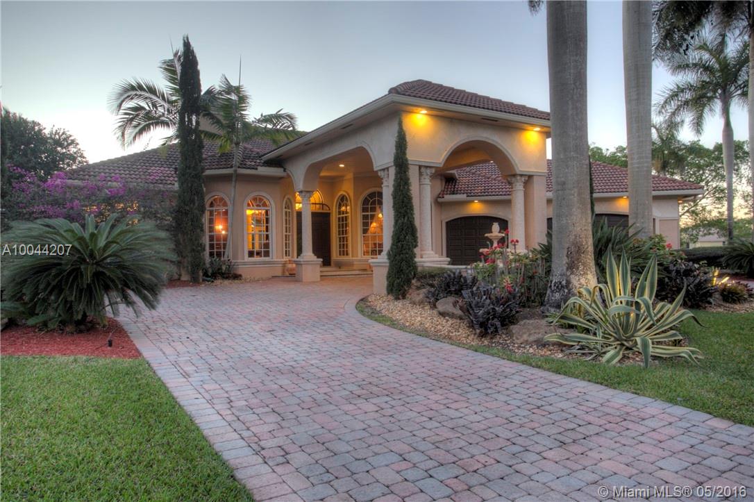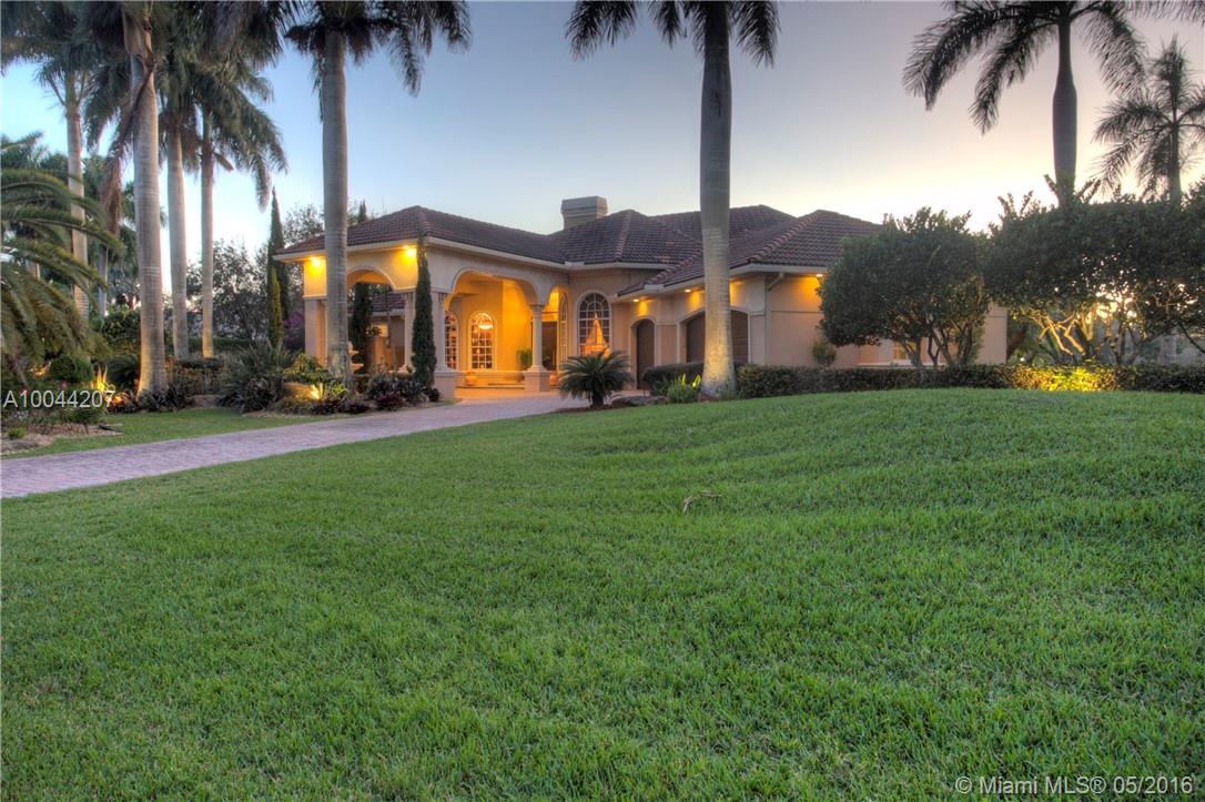 Looking for room to roam. This Elegant acreage custom estate boasts Marble floors,crown moldings,intricate millwork w/ a FRESH coat of Paint. Enter this beauty via long paver drive w/ porte cochere. Grand Liv. Rm w/fireplace/french doors w/pool/lake views.Enjoy 4 en-suite BR's+office & playroom, 4.5 lavish baths. Oversized Corner water lot, fenced with freeform pool/spa/waterfall.Gourmet kitchen w/48"wood cabs, granite,& Stainless. MBR w/sitting area/BA. 4th BR/2nd office complete w/wet bar and built ins