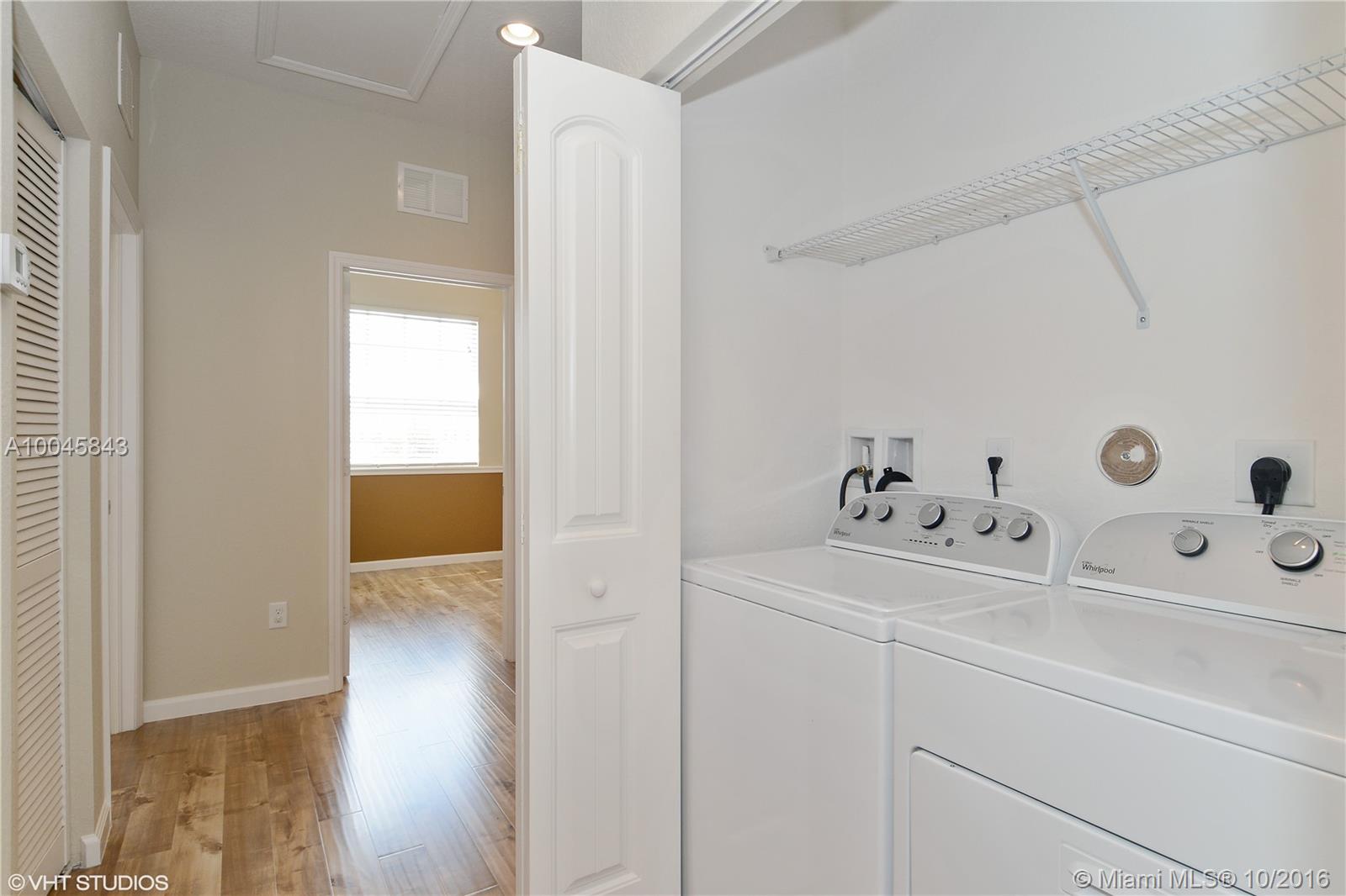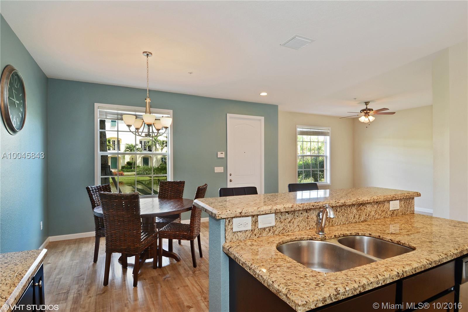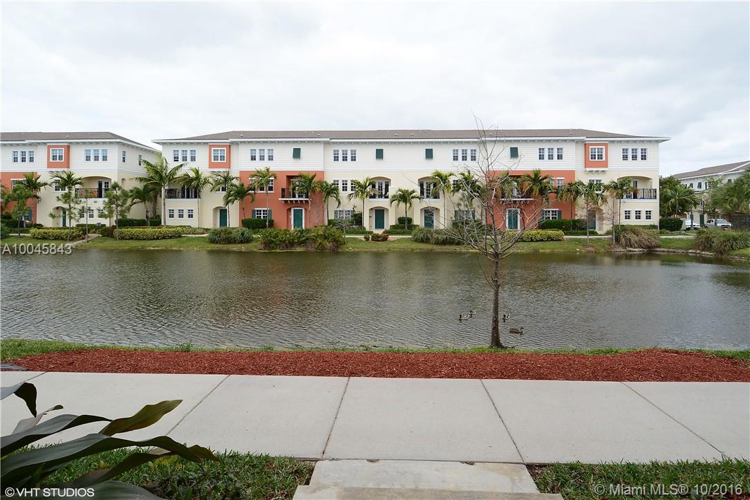 Built in 2015, this 3 br, 2.5 ba townhouse sits on a quiet lake, ideal for jogging or walking along. All Impact windows, professionally painted and move in ready. Enjoy lake views from kitchen, with granite counters and stainless appliances; and from dining area, living room, and master bedroom. The master bedroom has his and hers walk-in closets. Full size washer/dryer on 2nd floor. A bonus den/family room on 1rst floor. Club house has large Pool, fully equipped modern gym. Near beaches, 1-95. Pets ok