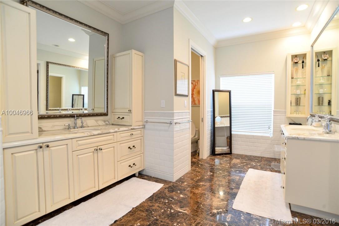 Beautiful, family oriented home on a quiet street in Pinecrest.Spacious formal dining & informal living rm with 10 ft. ceilings & hardwood floors.5 Bed/3.5 Baths.All Bathrooms & Oversized Master suite exquisitely remodeled.His/Her closets w/Jacuzzi tub & steam shower w/elegant marble throughout.Custom Eat-in kitchen w/Antique Ivory wood cabinets & center Island.Finest Viking stove,double ovens w/warming draw & sub-zero refrigerator open to play room.Backyard pool,hot tub & mini full-court basketball court