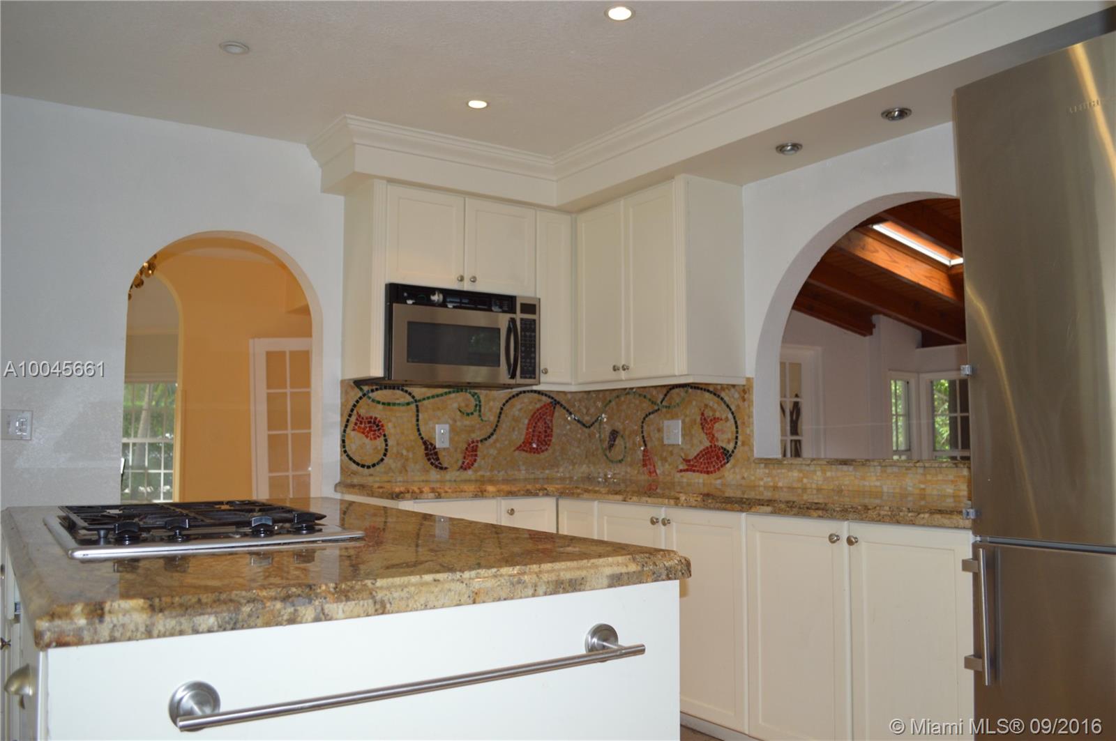 Charming, bright & open home w/ vaulted ceilings, wood & tile flooring, French doors & lots of windows on corner lot. Kitchen is equipped w/ stainless steel appliances, cooking island, granite counter-tops & has a separate breakfast nook. Kitchen overlooks a large dining room with skylights, built in window seat & door to an outside patio. Living room w/ fireplace & office/den w/ built in shelves. Master bathroom was tastefully renovated w/ marble & has a separate jacuzzi tub & shower plus much more...