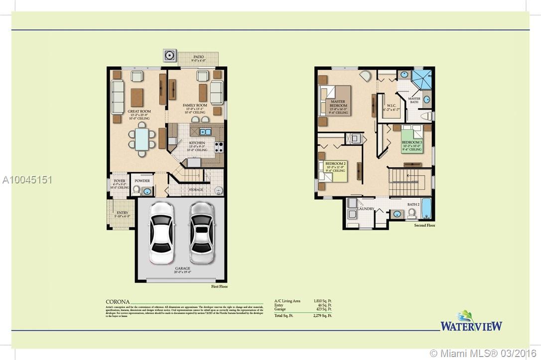 3 bedrooms, 2 ½ baths, kitchen with great room and family room, upstairs laundry room, master suite with walk-in closet, 2 car garage – 1,810 sq. ft. under air / 2,279 total sq. ft.• Located in desirable Miramar-named one of the 100 best places to live in the U.S. • Gated and landscaped entry with grand entry monuments • Elegant common area elements including a pool and covered pavilion • Mediterranean style concrete tile roof • Decorator exterior color schemes and textured finish •