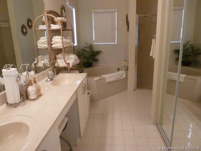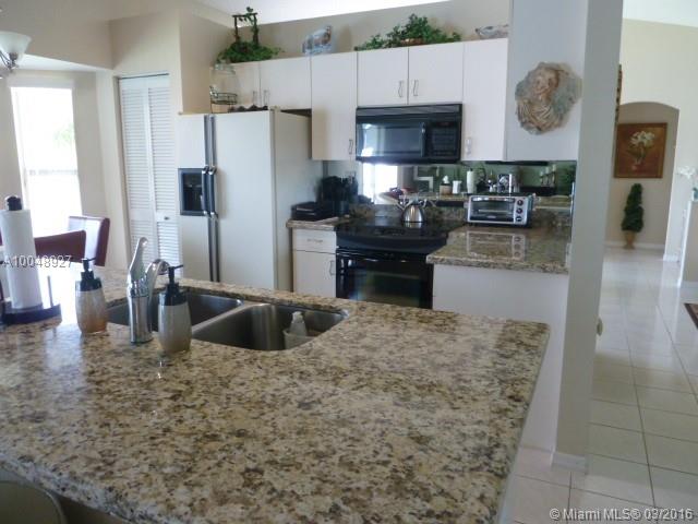 IN DESIRED TRILOGY 4 BEDROOMS 2 BATHS, 2 CAR GARAGE, NEW ROOF 2010, WIDE LAKE VIEW, IN PRISTINE CONDITION A/C 4 YEARS OLD KITCHEN WITH GRANITE COUNTERTOPS, SNACK BAR, OPEN TO THE FAMILY ROOM WITH A STUNNING LAKE VIEW, NO CARPET, NEUTRAL TILE ALL THROUGHOUT, HURRICANE ACCORDION SHUTTERS, WITH PANELS FOR THE GARAGE AND FRONT DOOR, IT WILL LOWER YOUR INSURANCE. MASTER BEDROOM WITH WALK IN CLOSET, MASTER BATH WITH ENCLOSED SHOWER AND ROMAN TUB, DOUBLE SINKS AND IT WON'T LAST, LOWEST MAINTENANCE FEE $55/M