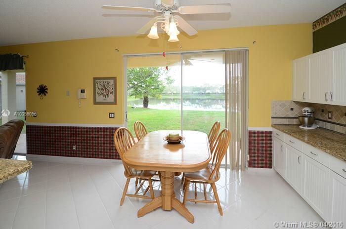 Lakefront 5BR/3BA home is situated on almost 1/4 acre, fully fenced backyard and has plenty of room for a pool. The spacious kitchen has been updated with granite counters, tiled backsplash, wood cabinets and stainless steel appliances. Wood laminate flooring in the living room , dining room & bedrooms. Plantation shutters in LR & MBR. Property boasts new windows on the upper level, accordion hurricane shutters, complete new gutter system and a lake fed irrigation system. Newer roof installed in 2007. .