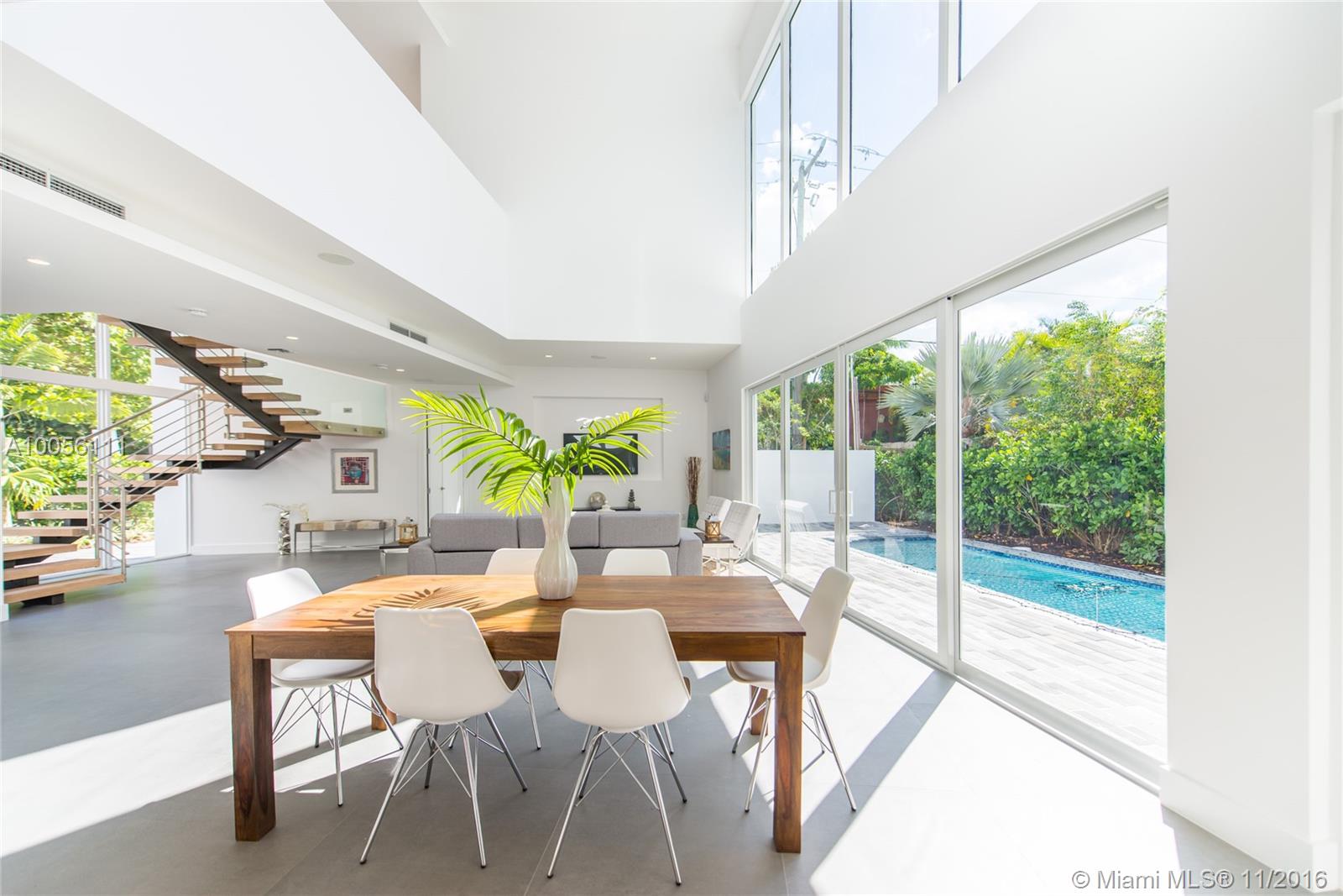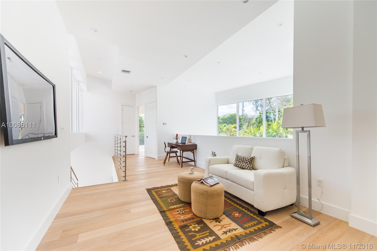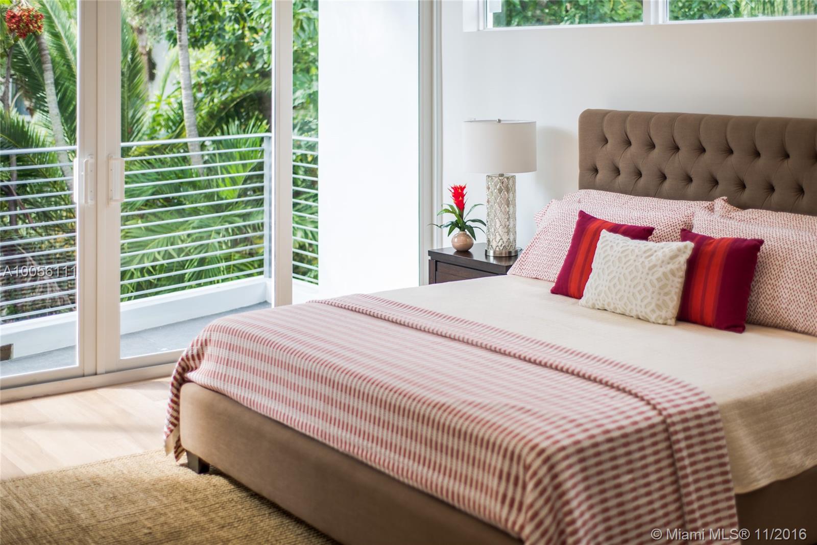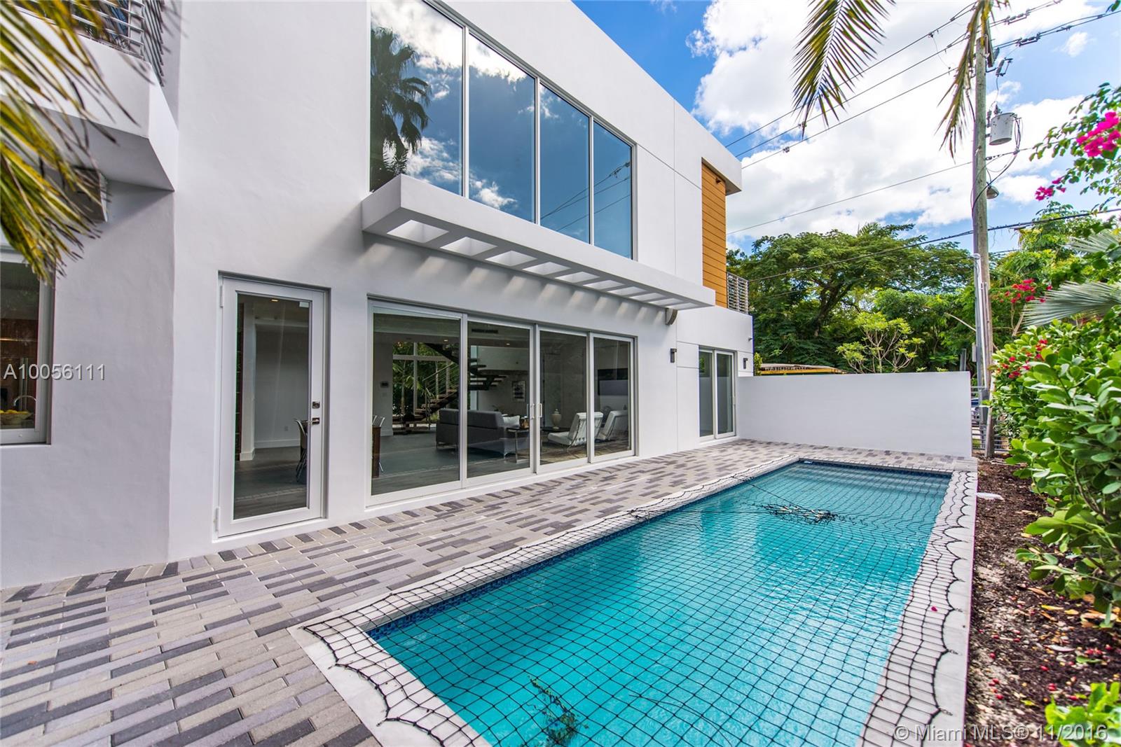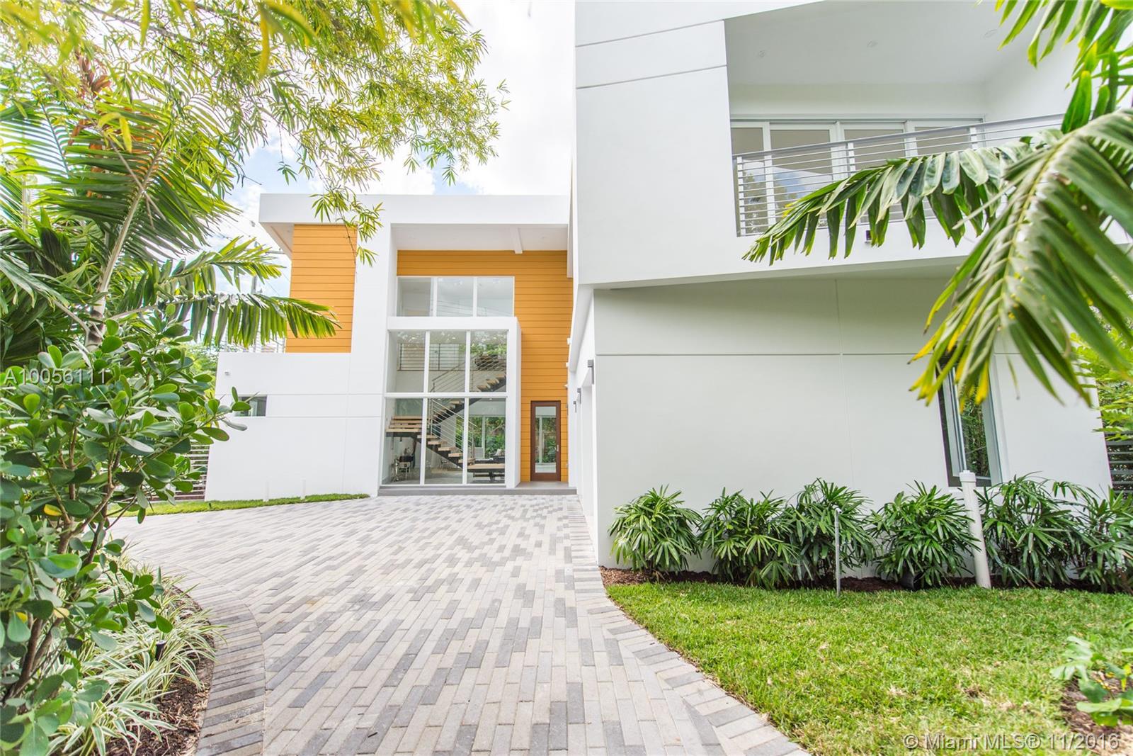 Tropical modern style new construction home in prestigious North Coconut Grove. Expansive & light filled open living spaces with volume ceilings and walls of glass that overlook the outdoor terrace & pool. Sleek Euro-style custom kitchen with high end finishes & appliances. Luxurious master suite with spa-like bath. Walk or bike to bay front parks & marinas. Minutes to downtown ,MIA, the Beaches and to the Grove village center’s galleries, boutiques & cafes.
