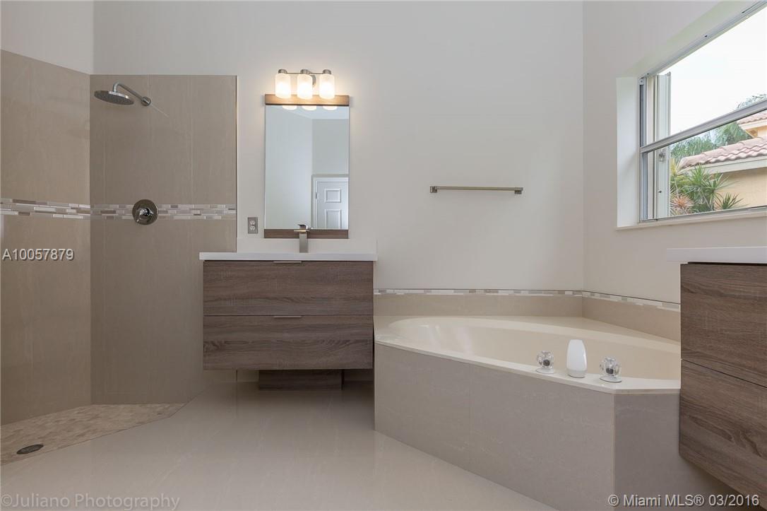 Completely remodel one story lovely house in one of Weston's finest areas. New bright porcelain floors , new kitchen with white quarzo counter tops ,stainless steel appliances , new bathrooms , completely fresh painted. Close to everything you need: A+ schools,shopping,banks,Starbucks and close to I-75 for easy commutes. This home is a 1 story with huge fenced yard,2 car gar.,excellent family neighborhood,guard gated community.