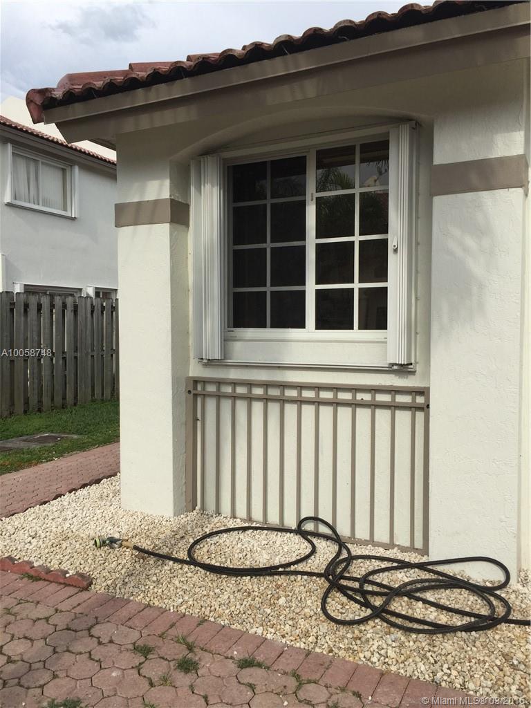 LOVELY ONE STORY TOWNHOME, 2/2 WITH AN ATTACHED ONE CAR GARAGE, END UNIT WITH LOTS OF LIGHT. NEWER UPGRADED APPLIANCES & A/C. GRANITE KITCHEN W/GLASS-TILED BACKSPLASH. CERAMIC TILED FLOORING. GATED COMMUNITY WITH 24HR SECURITY, CHILDREN'S PLAYGROUND, COMMUNITY POOL. WELL LOCATED COMMUNITY, WALKING DISTANCE TO ELEMENTARY SCHOOL, CLOSE TO MIAMI INTL. MALL AND DOLPHIN MALL, EASY ACCESS TO MAIN HIGHWAYS AND CLOSE TO ALL SERVICES.