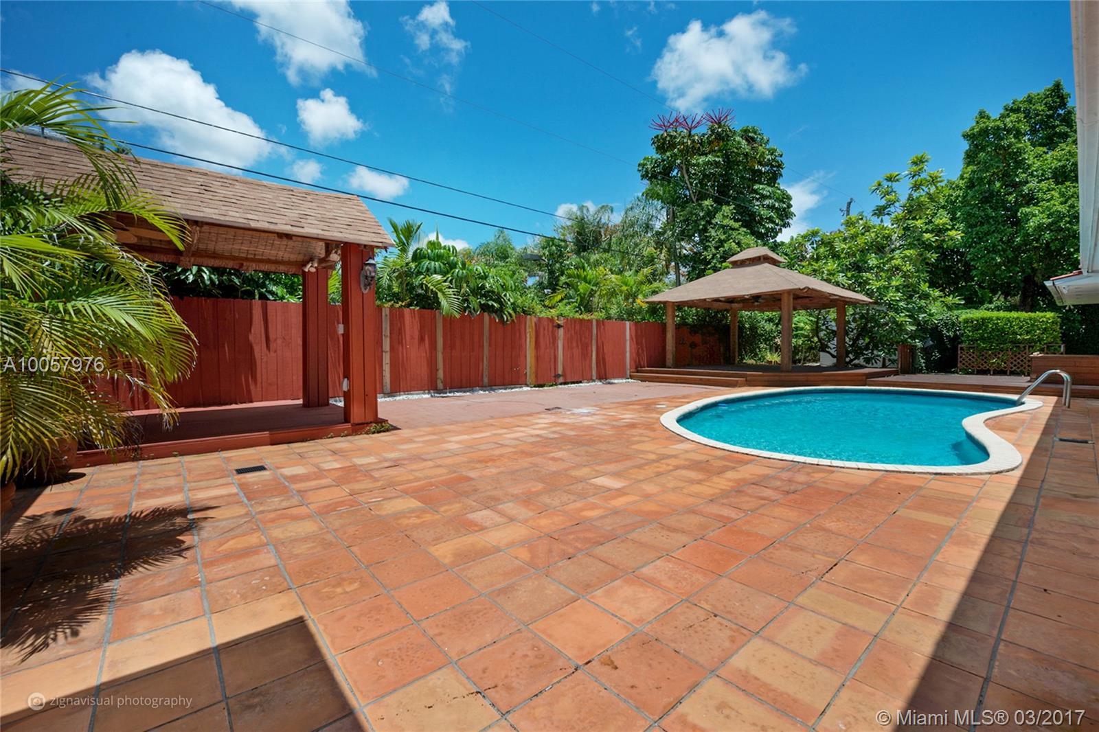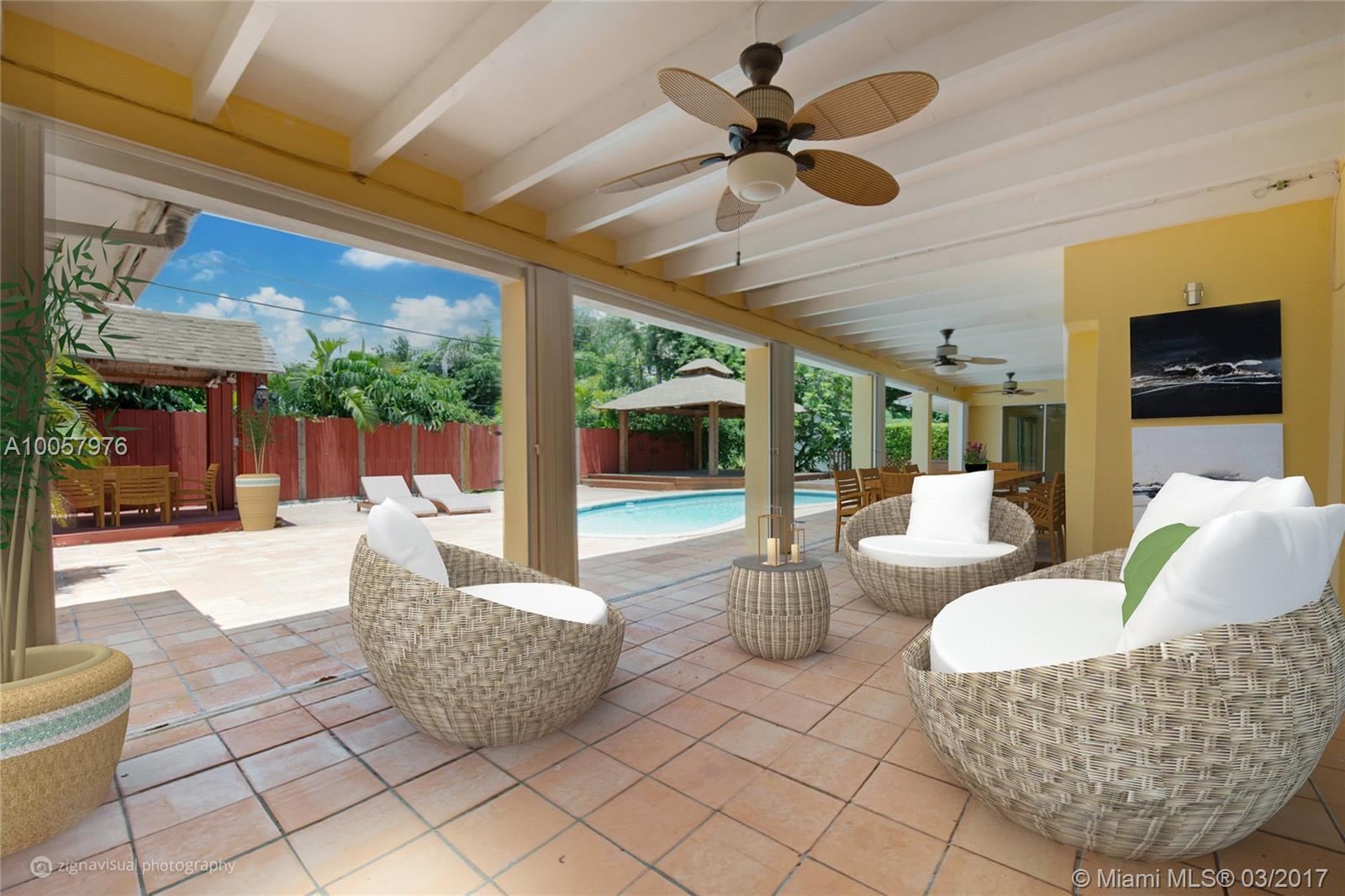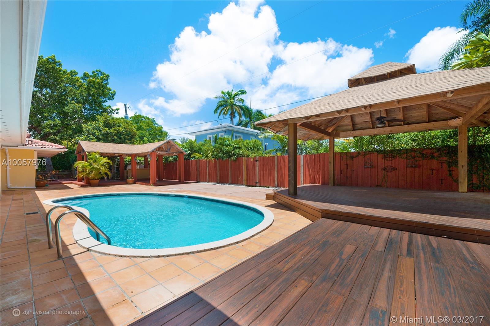 Pinecrest 1/2 acre pool home. Walk to best elem., middle & high schools. This home is ideal for a large family. Travertine floors & wood laminate in bedrooms. 2 separate family rooms a living room & dining room. 5 bedrooms with the master upstairs & 4 beds downstairs. 4.5 bathrooms total. Beautiful back patio perfect for entertaining. Spacious kitchen adjacent to family room & opens to back patio. Gated entry, great privacy throughout. Move-in ready. Large shed for storage in back with a/c. Fruit trees.