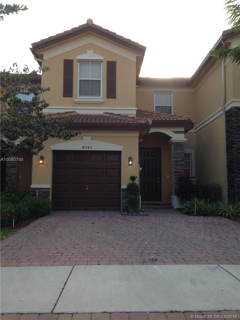 Santorini conveniently located very close to K-8 Rolando Espinosa School. Ceramic floors, carpet on second floor, paved patio, blinds in every window. Beautiful kitchen, SS appliances, granite countertop. 1 car garage, W&D on 2nd floor. Regular sale, own er motivated. Enjoy all great amenities from Islands at Doral Club House and great location within Doral. It is currently been rented for seasons.