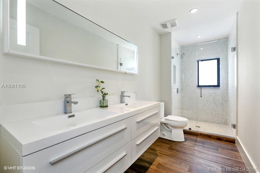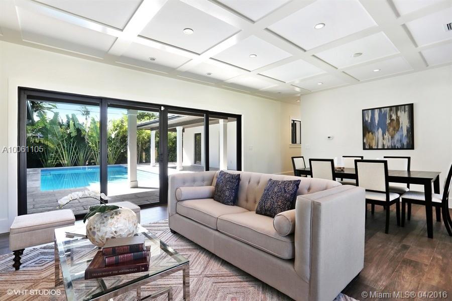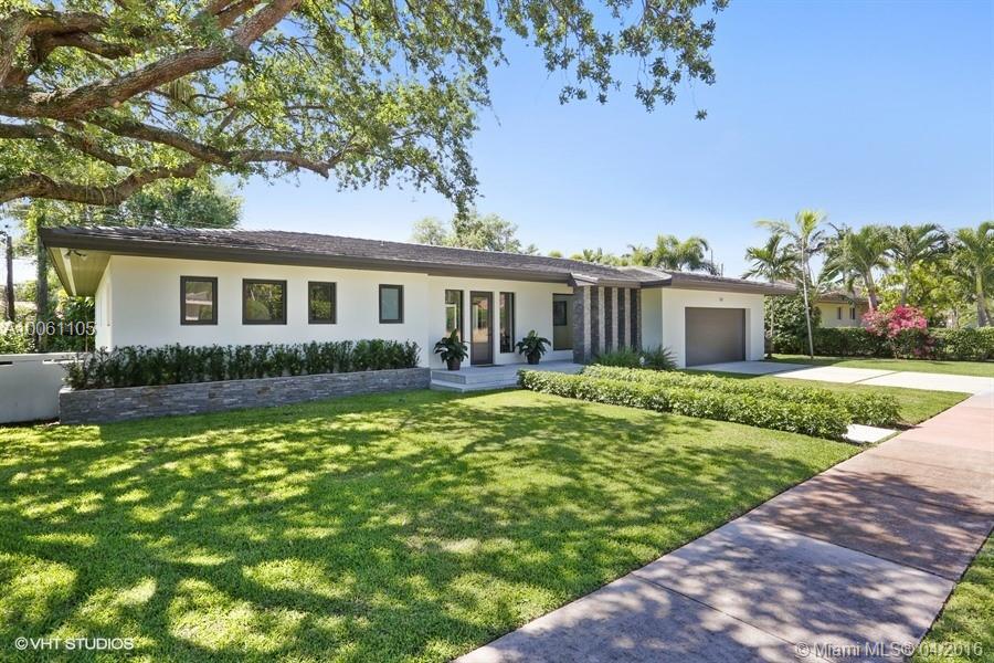 Beautiful contemporary Coral Gables home exquisitely remodeled with great attention to detail. This 4 BR/3BA home boasts an open floor plan & abundant natural light throughout. The wide plank ceramic floors throughout the home lend an aura of elegant warmth. The gorgeous white, mission style kitchen features an oversized center island with waterfall white granite counter tops and new premium S/S appliances. This spectacular home is conveniently located on a quiet street in the heart of Coral Gables.
