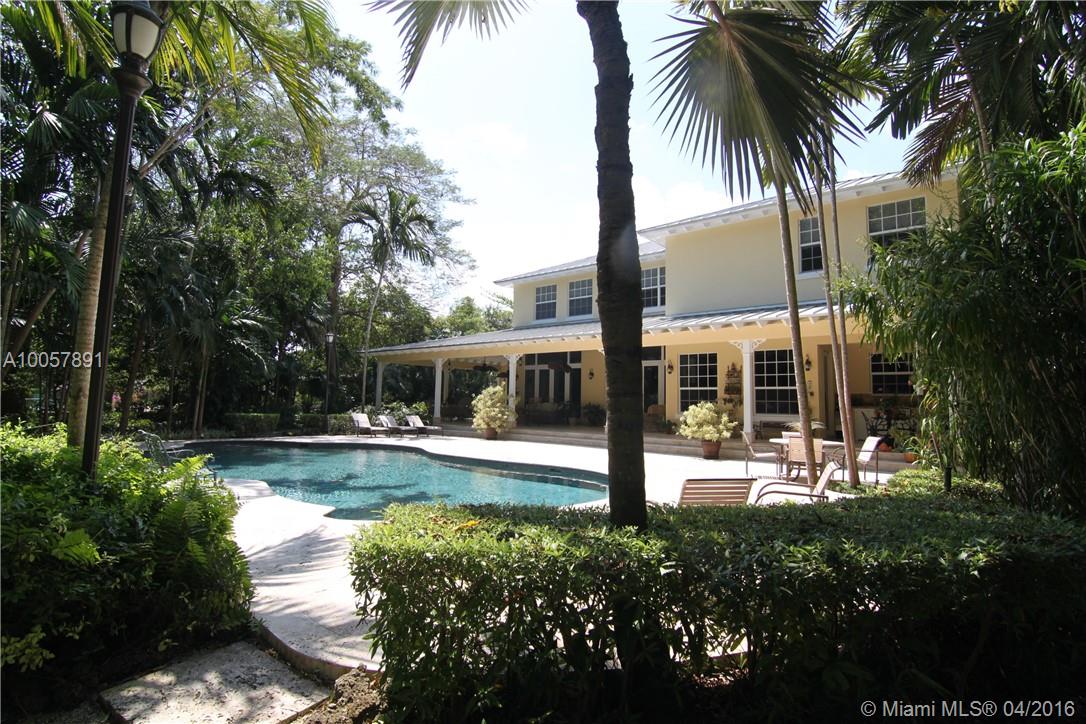 Spectacular Key West style estate on 1.4 acre mini Fairchild garden compound! "2004" custom built w/ meticulous high-end finishes, quality and great floor plan. Attention to detail throughout. Imposing foyer entry. Volume ceilings. Metal roof, marble & wood flooring. Gourmet kitchen. Elegant and gracious living, dining rooms. Fireplace, high-impact glass windows and doors. Backyard paradise w/ wrapped around veranda. Stunning freeform heat pool and spa! Elevator, summer kitchen. Separate full guest house!