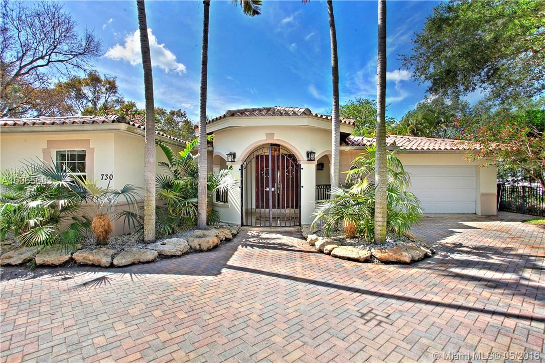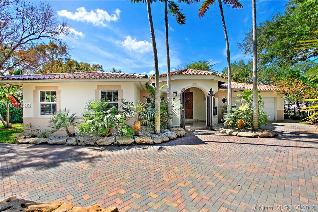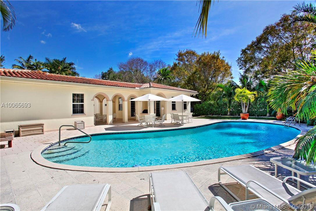 Completely renovated in 02, this home is ideally located in the Sunset school district. The stately entrance features wood beamed ceilings & leads to spacious formal living & dining areas. The kitchen is open to the sunny family room: a rare layout in the Gables! French doors from the fam & din rooms open onto the deep covered porch & lovely pool, giving you indoor/outdoor living options. Also overlooking the pool is the grand master w/ dressing area & beautiful bath. All of this on a gated corner lot.