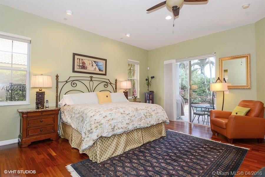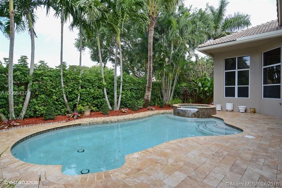 Delightful 3/3+Office situated on a private lot on quiet cul-de-sac. This lovely home will not disappoint... from the lagoon style oasis, beautifully landscaped back yard with Saline pool/spa & marble pavers to the perfectly appointed interiors offering elegant light fixtures, window treatments and Calif. closets. 13'ceilings, huge windows , Brazilian Cherry wood in Brms., new A/C and more. Circular driveway, 2 + golf cart garage. Large rooms. Prestigious gate-guarded Lake Estates. Low HOA & Top schools.