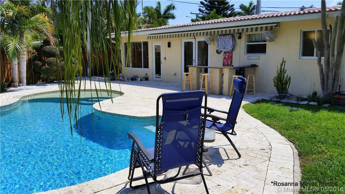 Great corner lot surrounded by lush vegetation to the private tropical oasis in the back, this charming remodeled in 2001, 3/2 pool home will not disappoint! Home features custom kitchen w/ granite counters, light & bright family room, updated bathrooms, tile throughout Bar area with an electrical awing, saltwater pool, fenced yard w/ large storage shed and hurricane protection for all windows. Less than 2 miles to the beach and close to shopping, dining and entertainment. Welcome to Paradise!!!!!!