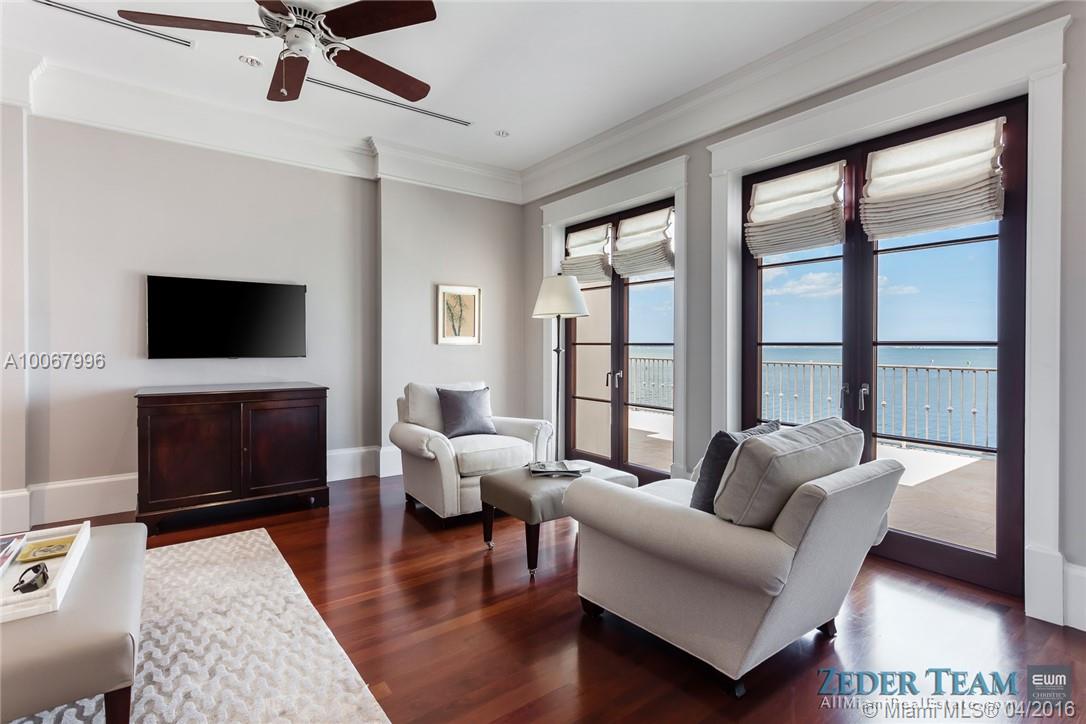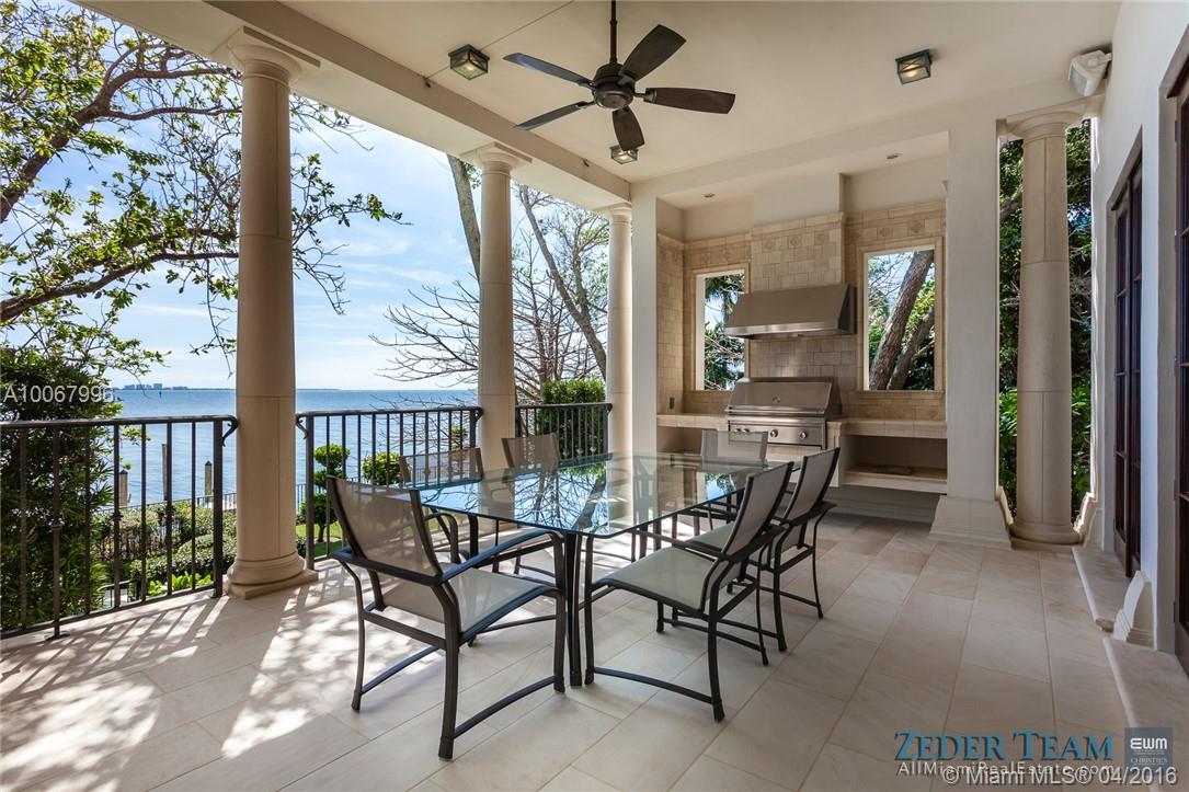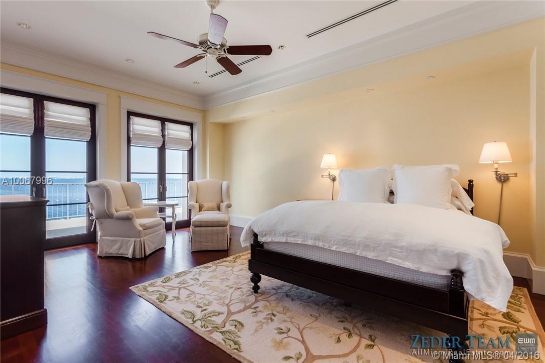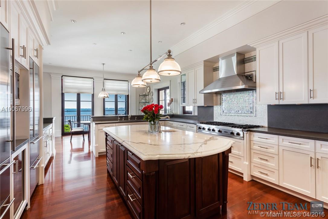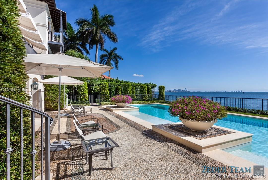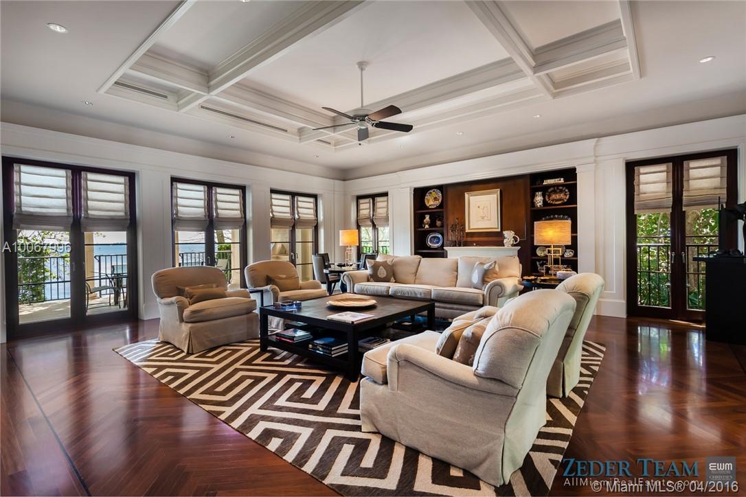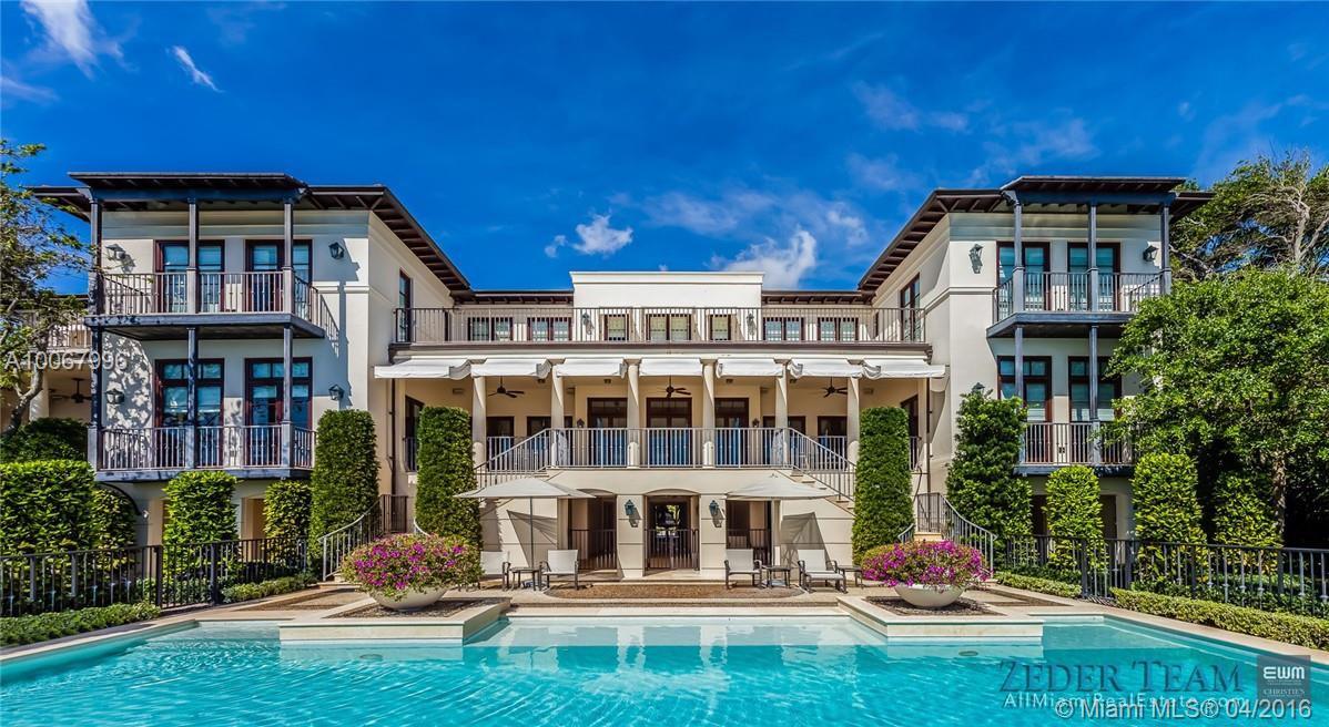 With 155.2 ft. of breathtaking waterfront in the renowned gated community of Tahiti Beach, this opulent 3-story Palladian-style home features unrivaled bay views. Upon entering the Ramon Pacheco/Jonathan Hogg designed home, one is welcomed by a beautifully landscaped serene garden which sets the tone for what is inside. With no expense spared, designer finishes and attention to detail throughout highlight the home while providing unobstructed views of the bay, swimming pool, garden, and 52.3 ft. dock.