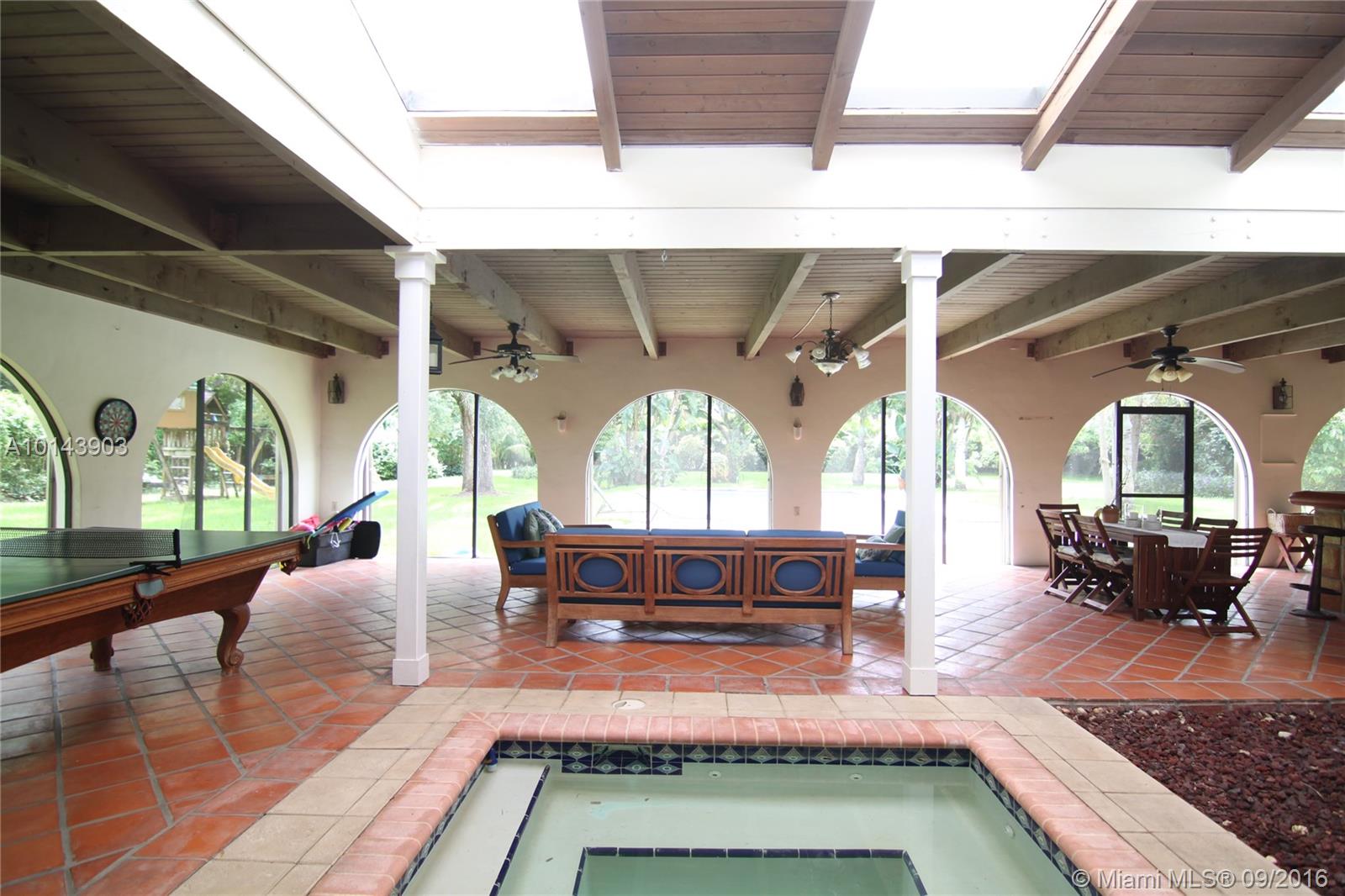 Great opportunity! Prime location on most desirable North Pinecrest street! Lush wide and deep oak laden acre (300 ft deep) Gorgeous, serene park-like setting with inviting open pool! Partially updated of over 4000 sf. New impact glass windows & doors! Split plan. Large master with vaulted ceiling & luxurious bath. Addl. den/office w/bath. Guest quarter. Large patio w/ skylights & bar! Property is being sold for nearly lot value (48,787 sf). Architect's renovation & expansion plans available. A must see!