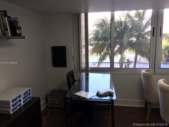 Great office space in the heart of Miami Beach. Excellent views of pool area and bay water from office. Basic cable, electricity, and internet included. Valet parking available for $50/month for first vehicle, $100 for additional vehicles, or park yourself spot for $150/month. Landlord offers second identical unit also available for rent across the hall. $950/month.