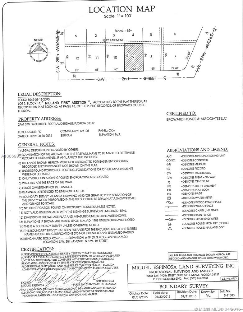 Vacant Buildable LOT for TRIPLEX. Three Units can be Legally Built in this Lot, (1 Unit: 3Beths/2Baths and 2 Units: 2Beths/2Baths). VERY GOOD LOCATION: JUST 1 BLOCK (Walking distance) to the New SUPER WALMART in Broward Blvd and SW 27th. Ave. Just 4 Blocks to I-95 North or South Ramps, 5 Blocks to Amtrak Fort Lauderdale Station, 5 minutes to Fort Lauderdale Down Town, 10 minutes to the Beaches, Las Olas Blvd., Galleria Mall or AIRPORT. Lot Survey and Measures Available (AUTO CAD). NO FILLER REQUIRES.