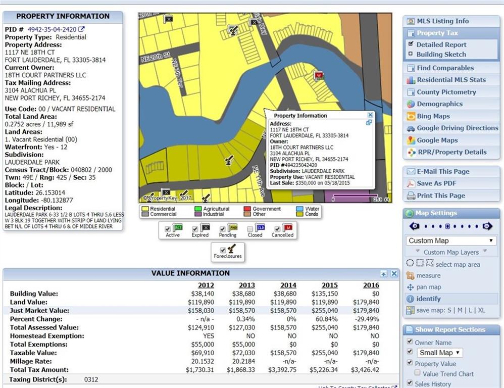 Very rare opportunity to acquire riverfront lot near Wilton Manors and the beaches. Zoned for up to 7 units, but well suited for a large duplex or a large single family home. Lot cannot be subdivided for multiple single family units. Dock and tiki hut fundamentally sound but need maintenance. Soil reports in attachments. De-mucking or construction on piered foundation recommended by engineers. Preliminary plans for large duplex available. Can refer for land financing.