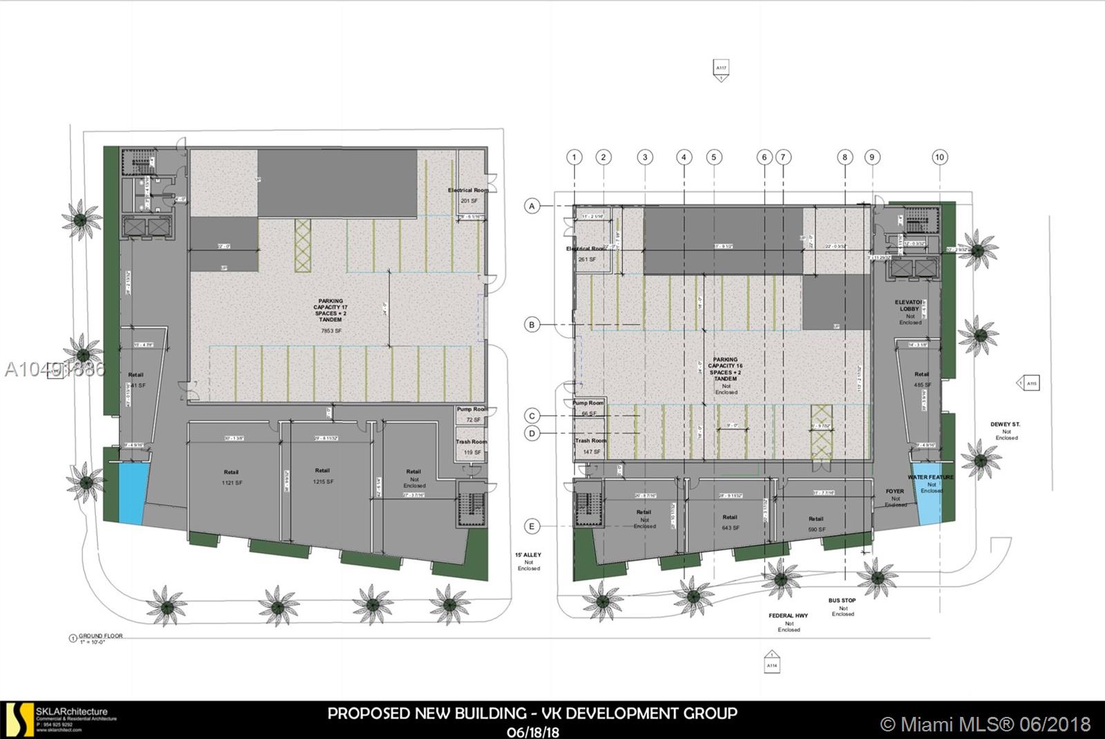 Excellent development opportunity on the market. Hollywood Development Site at 901 S Federal Hwy and neighboring parcel. The property sits on the signalized corner of Federal Hwy and Washington St. It is comprised of two adjacent parcels totaling .8682 (+/-) acres. The property enjoys new zoning (FH-2) which allows many new uses, FAR of 3 and building heights up to 10 stories(140 ft). On the first parcel located office building. Currently office, remodeled to be Sales Office for new development project. Preliminary drawing presented and prepared by Sklar Architecture. Mixed use project with first floor retail and residential units above. Building height to be no more than 75 feet. Parcel 1 – 17,327 s.f. Parcel 2 – 20,496 s.f. 280ft Frontage on US-1