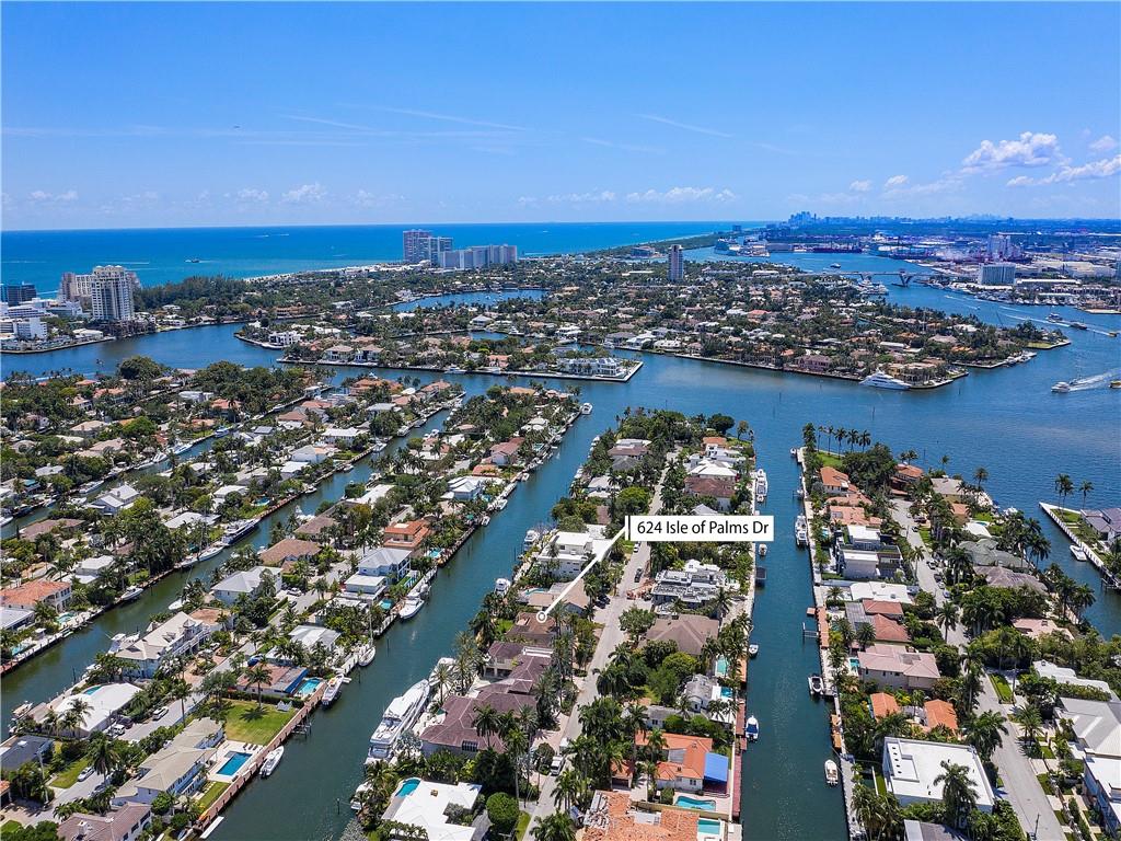 Las Olas Isles-This is an incredible opportunity to purchase one of THE expansive prime 13,000sf+/- lots in prestigious Las Olas Isles offering 100' of waterfrontage with dock on an extra wide canal (119'+/-). Perfectly situated on the East side of street featuring an East facing pool. Beautiful newer construction homes throughout Isle of Palms. Steps to Ft Lauderdale Beach, famed Las Olas Blvd, Swimming Hall of Fame, pvt beach clubs, world-class restaurants, arts/ entertainment, water sports, parks & house of worship. Ft Lauderdale is the Yachting Capital of the World. This property offers THE premier location for any boater! Surrounded by the Intracoastal, New River, Sunset Lake & 5 minutes to Inlet. No fixed bridges (only 1 bridge to Inlet w/ 55' clearance when closed). House is AS-IS.
