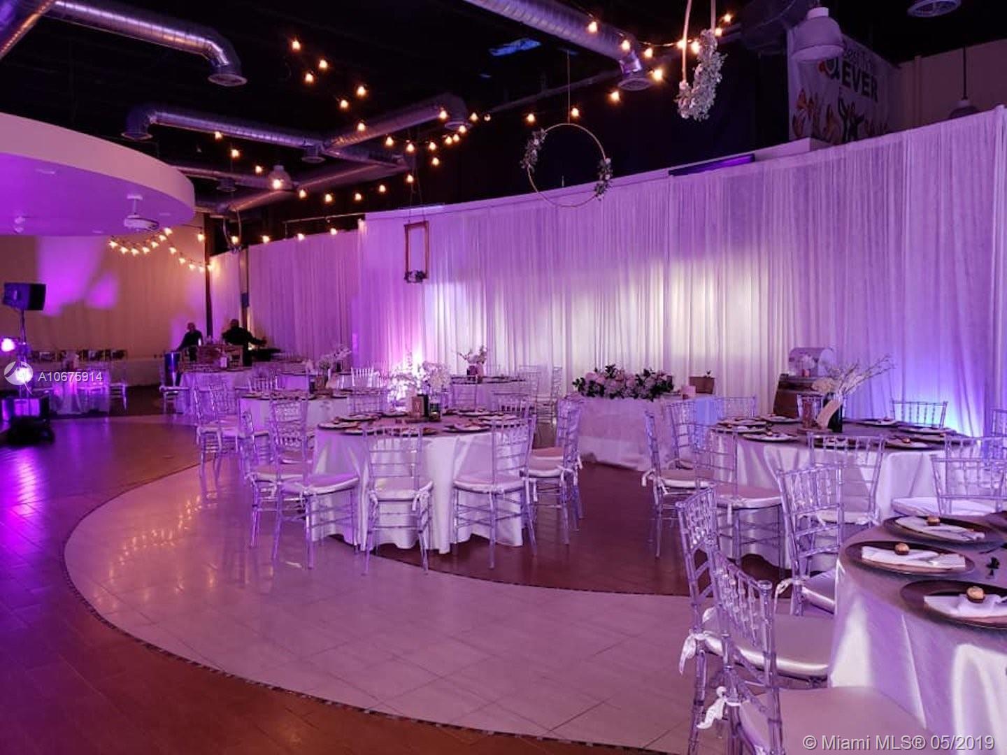 Located in a prime area of Doral! Corner unit w/2 warehouse spaces which represents the ultimate location to operate a business. Excellent multi-use facility, frontage/exposure/signage to 98 St. Inside configuration is for an entertainment/party lounge. Ideal for an art gallery, theater, professional office, gymnasium, fitness studio, church, retail, restaurant. Reception area, office area, kitchen, storage area, baths, back low dock rolling doors for each unit. Open parking spaces. Very well maintained. Each unit has its own folio number. Perfect for investors or owner user. Please do not disturb the current occupant. 4812 SQ FT!!