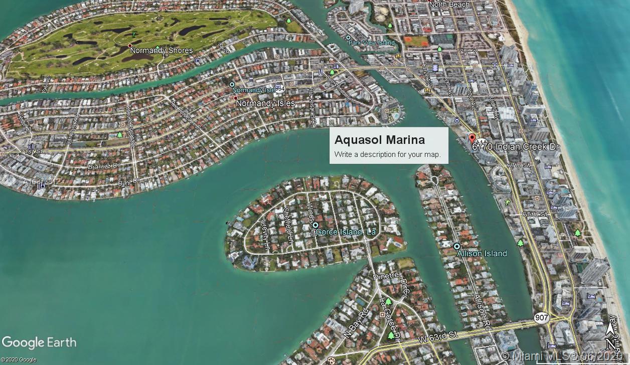 Only boat slip (CU-35) available for sale at the Aquasol marina in North Beach. No requirement to own a condo to buy a boat slip. Boat slip CU-35 is approximately 12 feet wide by 40 feet long and can accommodate boats up to 45 feet. Central location in the widest section, with the most spectacular views of Indian Creek. Excellent recreational opportunity for all water activities. Parking space included in the price. Boat slip owners are also entitled to all building amenities such as pool, gym, storage, security, valet services, etc. Low cost maintenance. Electrical and water services available. Rental income potential when not using slip.