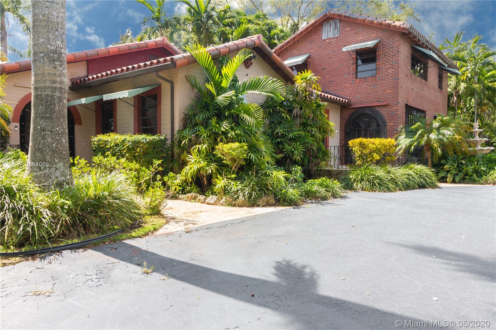 Magnificent Pinecrest Mediterranean estate on a nearly one and a half acre lot in the sought after walled in community of The Elysium. Originally built in 1934 this property is uniquely elevated above the street with lush landscaping including large mature oak trees, royal palm trees, mango and avocado trees. The property currently has a large 4 Br, 4Ba home, separate three car garage, separate sprinkler pump house and large tiled pool. This is the perfect home for renovating or to build your dream home on the spectacular lot. Lots of privacy. Motivated seller. Bring all offers!