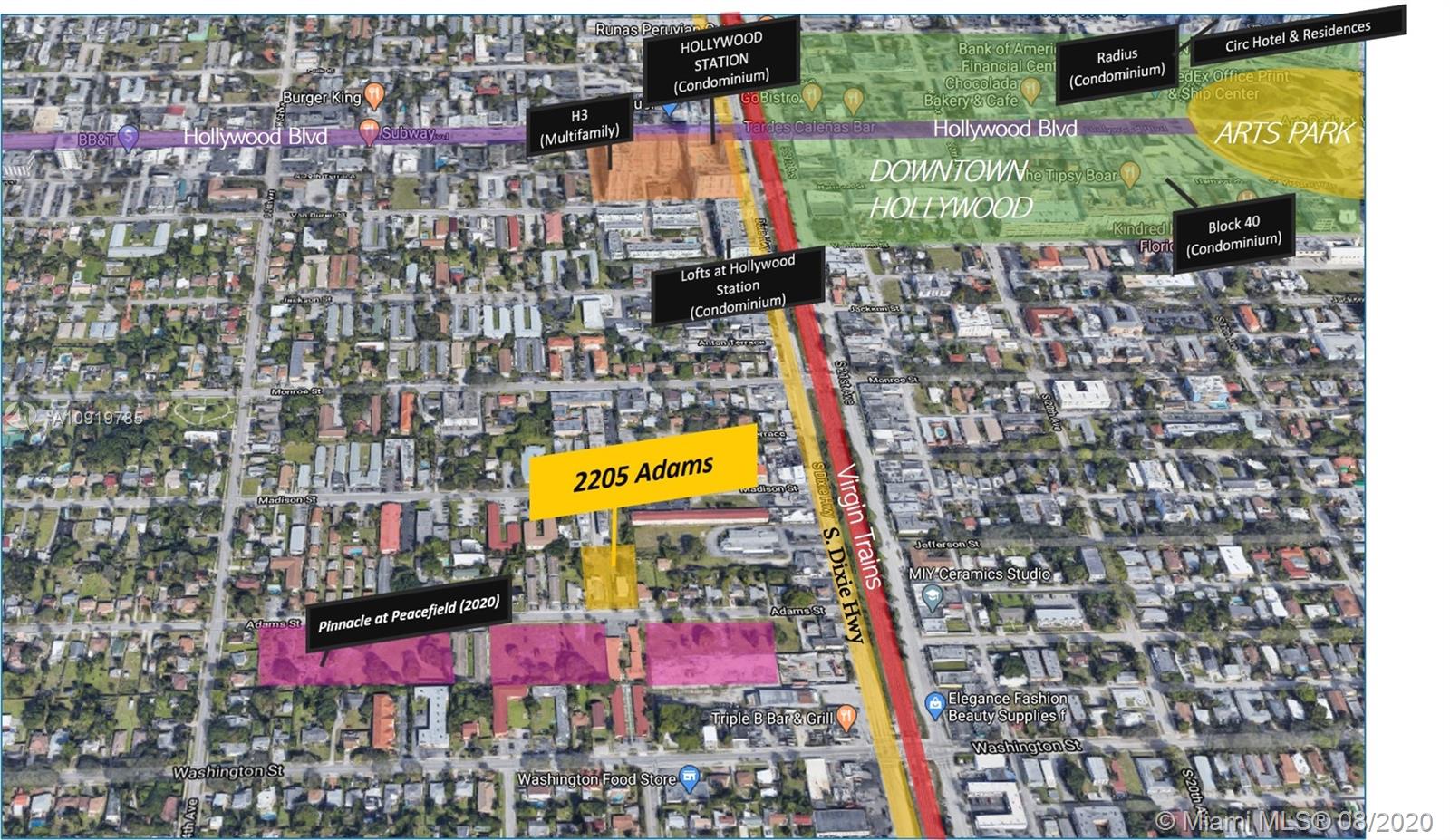 The rectangular lot measures +/- 26,650 and includes two duplexes generating excess income. The City of Hollywood has appointed zoning that encourages urban development which capitalizes on the District's proximity to rail, the Downtown area, and the Dixie Hwy commercial corridor. The property is being offered as a redvelopment opportunity due to its potential for massing and density. Zoning allows multifamily development, bed and breakfast inns, and single family homes. Architectural plans have been prepared for the redevelopmet of a 40-unit as a sample of the possible uses.