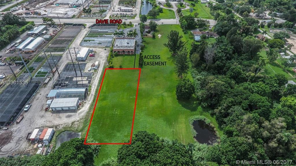 Development Opportunity Centrally located, Appraised at $275,000 in 2016. Zoned RO (Residential Office) on 26,121 SF in Davie. Adjacent lot w office building provides an access easement from Davie road. Zoning allows for some multi-family and single residential uses as well as office. There is currently a plat restriction for a single fam residence , but a buyer can work with the town to remove the restriction. Condo units in this area are $350k and Houses in the $600k range. Minutes to Ft Lauderdale Airport, Hard Rock Casino, Beaches and Universities