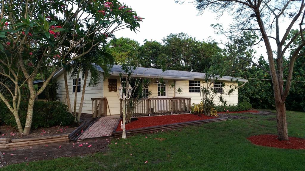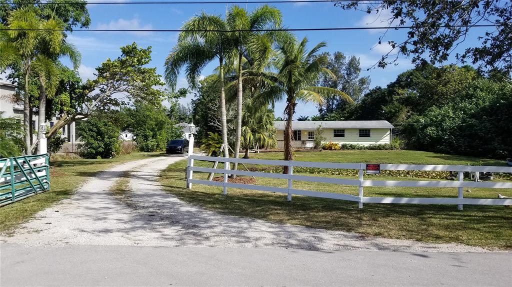 Beautiful Country setting on 2.38 acres of land can be subdivided into two 1.19 acre lots. Has already been approved by town of Davie see enclosed attachment of the survey. Three bedroom two bath front home large screened back porch and outside back porch and barbecue patio for entertaining. Gorgeous front yard with a pond and a white picket fence. Property has huge sheds with three different locations, handy man work shop, horse and tackle, hay etc. Home on cul-de-sac third house from the end of the street. Buy the whole parcel and subdivide it yourself or we will do it for you, not including putting in the driveway. Keep front house for relatives, Butler or Maintenance man. Then build your Dream home on the back lot. No Homeowners Association, and horse's allowed. 15 minutes to beach.