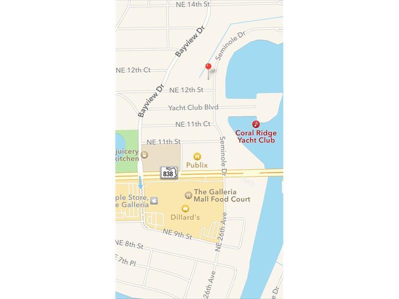 Incredible Seminole Drive location! Walk to Galleria Mall, Beaches, Parks, and the Yacht Club. This lot will accommodate two large yachts up to 67 feet! Wide Seminole Lake location. By boat you are 3 minutes to the main intercostal waterway. One block fr om the Coral Ridge Yacht Club and George English Park. This a rare location.