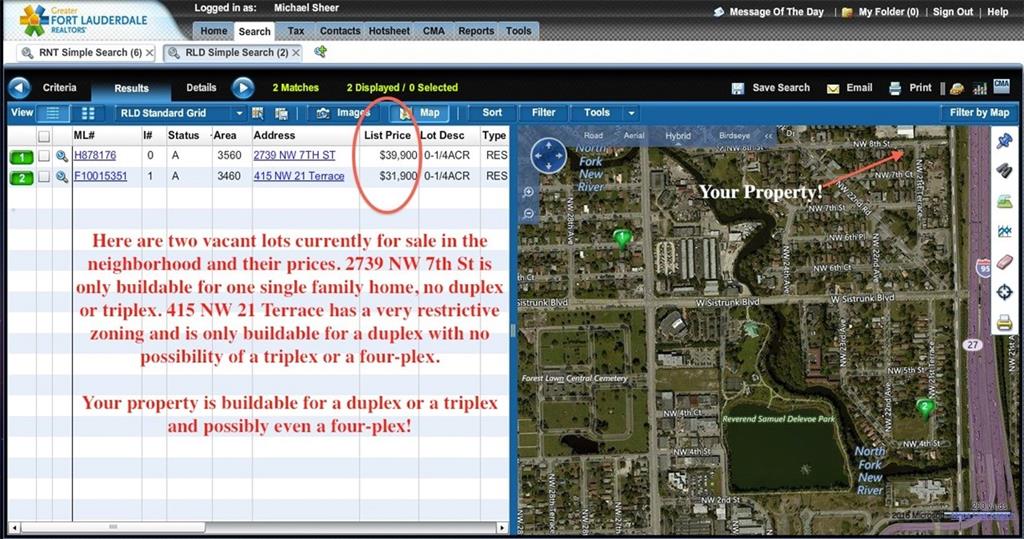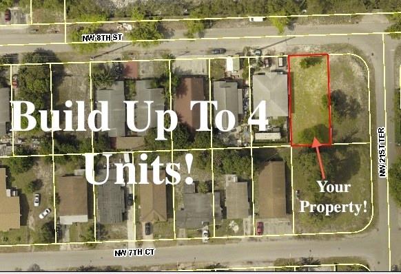 Build up to 4 units! Pay under $7k per unit for the land! There is no multifamily lot in Broward County available for under $7k per unit for the land! 3 min to i-95, 10-15 min to downtown/beach/airport! 2-3 bed/1 bath units rent for an average of $1,300 in the area; new construction will rent for more! Build 750 sqft units at $100 per sqft and earn 18%+ cap rate! The only recently sold lot in the area, sold for $41k; this lot was around 1k sqft smaller than 2124 NW 8th St and only buildable for 1 unit!