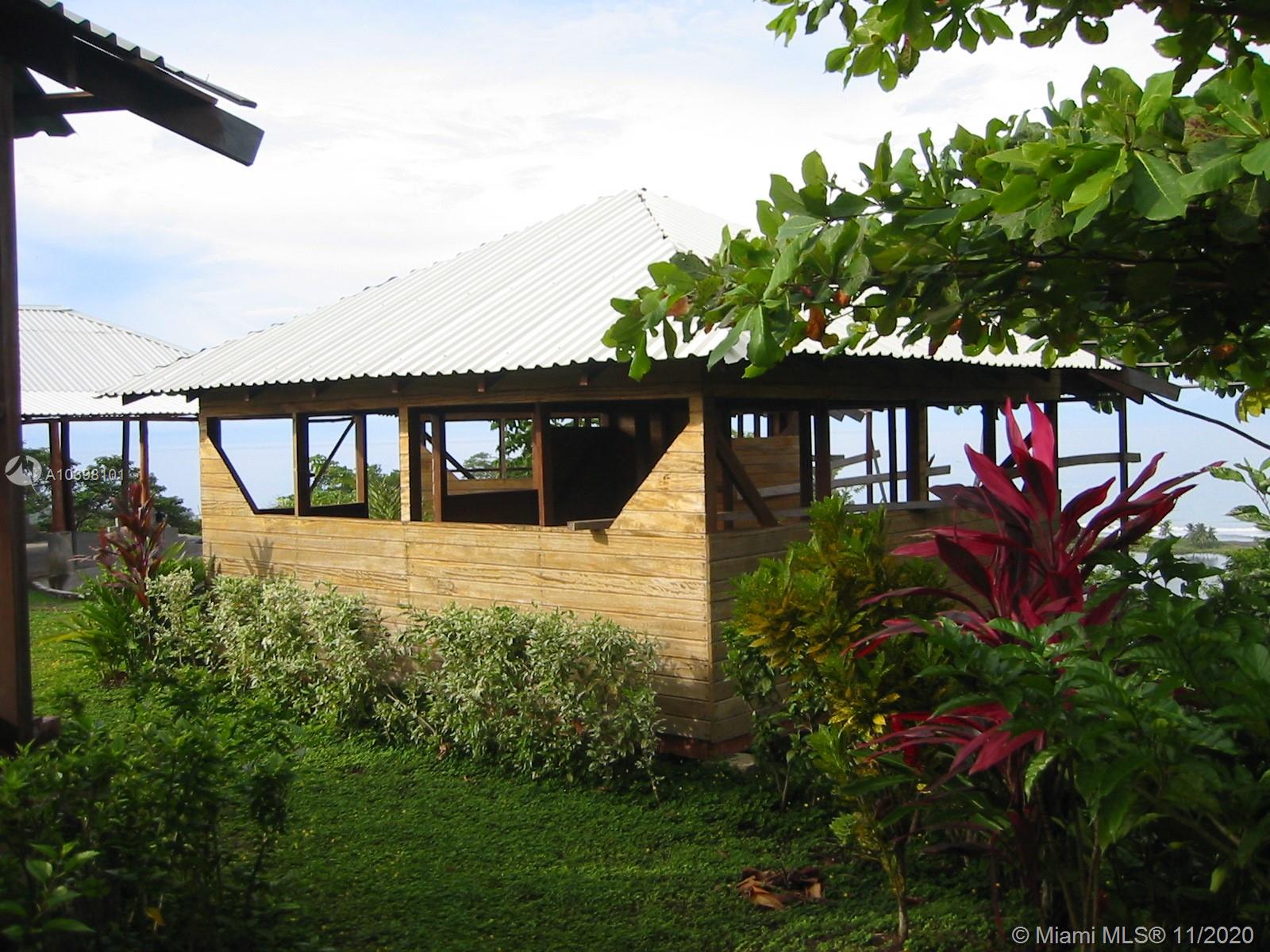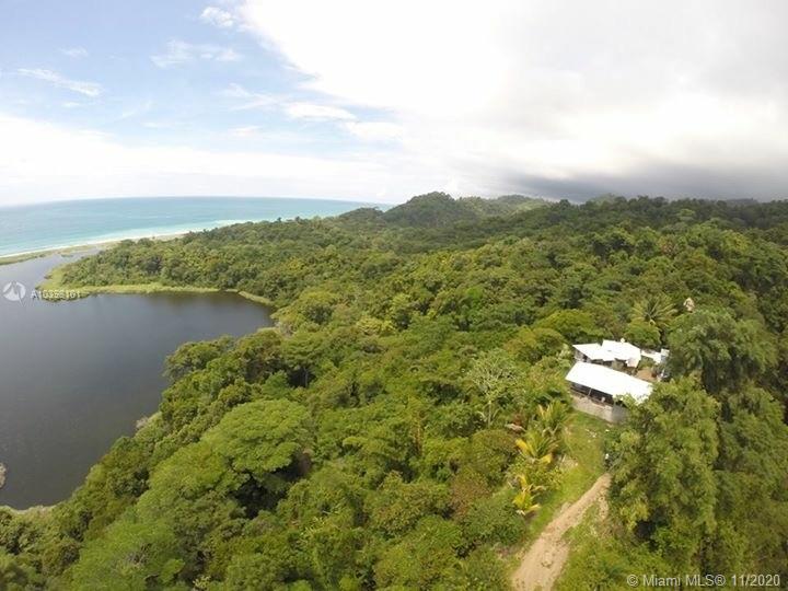 Oceanfront view from this 27 acres of rainforest mountainside in Carate adjacent to the famous Ecological Corcovado Park. With its own stream and waterfall, the property has 3 beautiful ridges for building, 300 degrees Ocean & mountain views and is 400 feet above the Pacific Ocean! By far, the most beautiful piece of land on the Osa’s Pacific shore. Situated on the property are a main lodge for dining and meeting with a kitchen and a small swimming pool. Accommodation consists of 2 native wood cabins with private porches and baths. Perfect for a large family, development, educational or religious programs, yoga retreat, ecolodge/bed and breakfast. The property has running water and generator. Stable temperatures and Ocean breezes. Walk down 15 minutes to the beach & to the local airport.