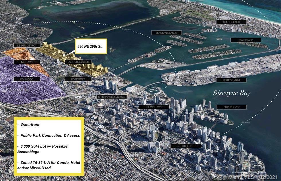 WATERFRONT land development opportunity in Miami's hottest area: East Edgewater! Possible assemblage up to 26,880 SqFt of land (for around 423,000 BuildableSqFt / 92 condos / 184 hotel units). Prime development site for a condo, hotel, and/or mixed-use w/ beautiful views of Biscayne Bay! Property connects to new Park w/ access. GREAT ZONING T6-36A! Next to brand-new, ultra-luxurious, multimillion condo buildings. Walk to Midtown, Design District, and world-famous WYNWOOD area (which is world-renowned for it's art galleries, outdoor cafes, & shopping). In fact, NE 29th St is one of the very few streets that takes you directly to Wynwood. Bring your Developers & Investors!
