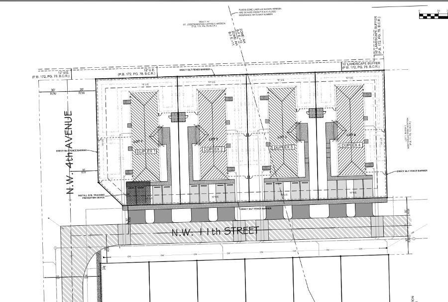 Located in the center of Pompano NW CRA as well as in the Opportunity Zone! The site is about 2.8 Acres / 123,000 sq,ft of mostly cleared land and consisting of 16 folios. The current owner obtained building permits approvals for 4 duplexes as well as initial city approval for, each unit is 4 bedrooms and 2.5 bathrooms, each unit can be easily rented once completed for about $2350 So the total site will hold 4 duplexes (8 units) and will generate approx. $225,000 gross income. (Impact fees already paid for) Single Family Homes- Each home is 1600 SF consisting of 4 bedrooms and 3 bathrooms and can be easily rented once completed for about $2600 So the total site will generate approx. $375,000 gross income.