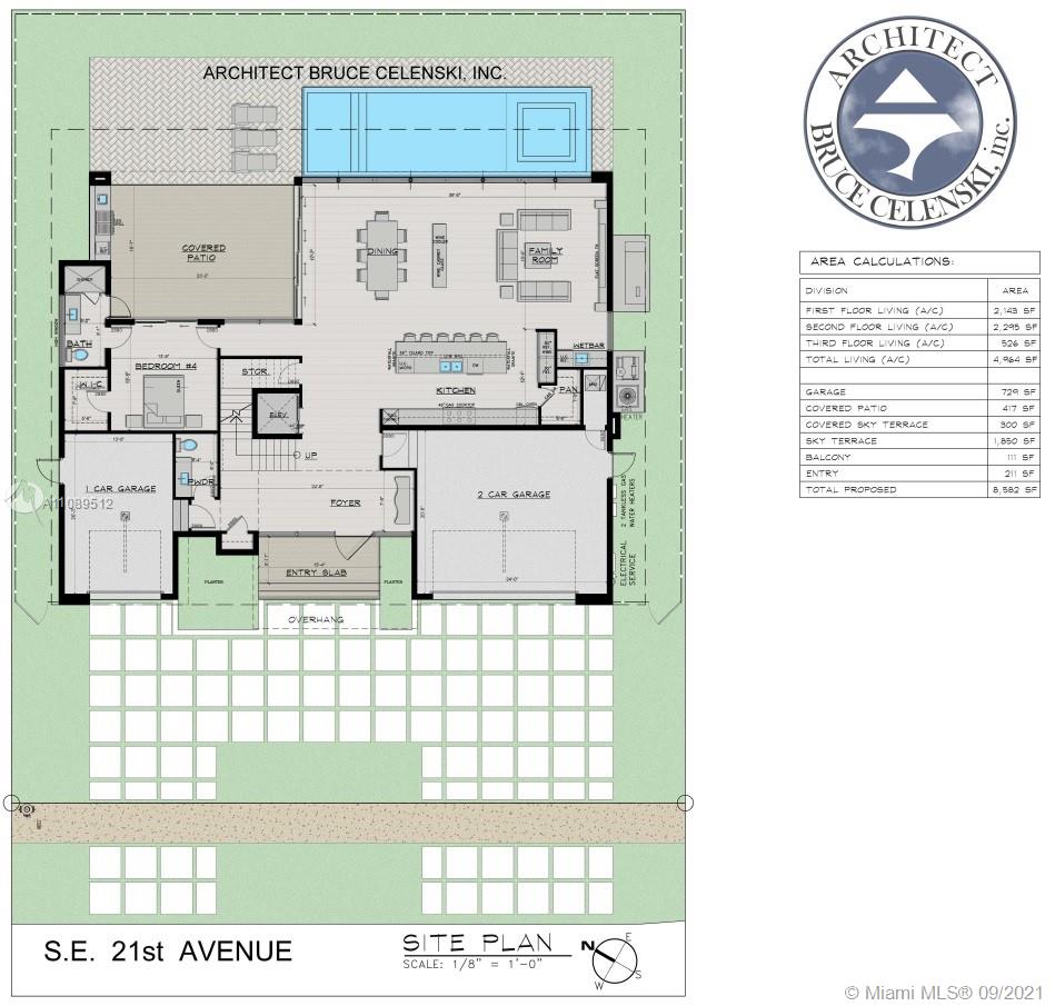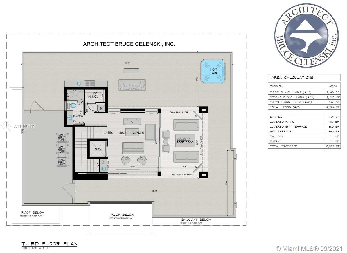 Plans for fabulous rooftop terrace home designed by Bruce Celenski Architects specifically for this lot with incredible rooftop views. Plans have been fully approved and ready to break ground. Enjoy breathtaking views from the 3rd floor lounge with elevator and 2,150 SF sky terrace. Sky terrace has been designed with a full bath, walk-in closet, wet bar, indoor lounge, covered outdoor lounge, outdoor kitchen, fire pit and hot tub. Main living areas consist of 4 BA, 5 full BA, 1 powder room, 3 car garage, ground level pool and outdoor covered kitchen. One 1st floor bedroom. Located on a 85x100 lot, this 4,964 SF, air-conditioned, tri-level home has views of the ocean, Inlet & Port Everglades. Semi-gated beachside community provides easy access to beach & SE 17th Street shops and restaurants