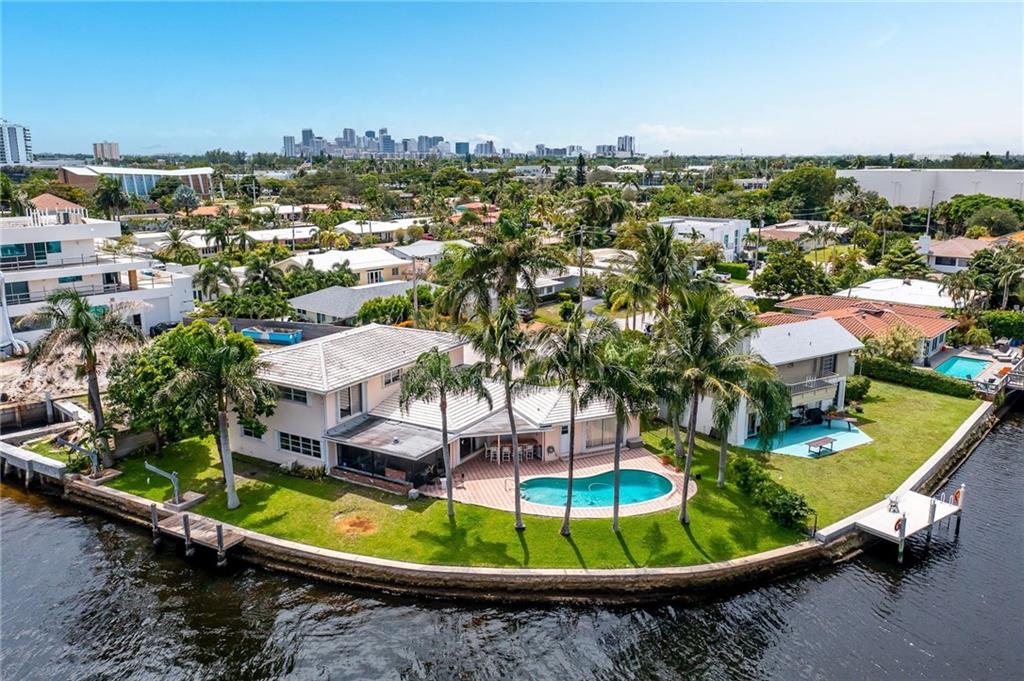 COMMANDING ONE OF THE MOST SPECTACULAR WIDE WATER VIEWS IN THE CITY Iconic 162 ft Point Lot Exclusive Bal Harbour: A gated, quiet enclave of ocean access homes, offers a beautiful one mile stretch along the picturesque Middle River. Made all the more so by the realization, you're only minutes from the areas best beaches or Las Olas and Downtown Ft Lauderdale. Superbly convenient, stroll to Traders, Whole Foods, Shoppes & Restaurants. Spacious bright & open floor plan. This 6 / 5 is decorator ready for your upscale renovations or a stunning site to build new. Situated on a very quiet Cul-de-Sac with watersports from your backyard, full moon kayaking, paddleboard w manatees & osprey. High bridge fits boats 40'++. Truly one of a kind property & upside for the savvy end user or developer.