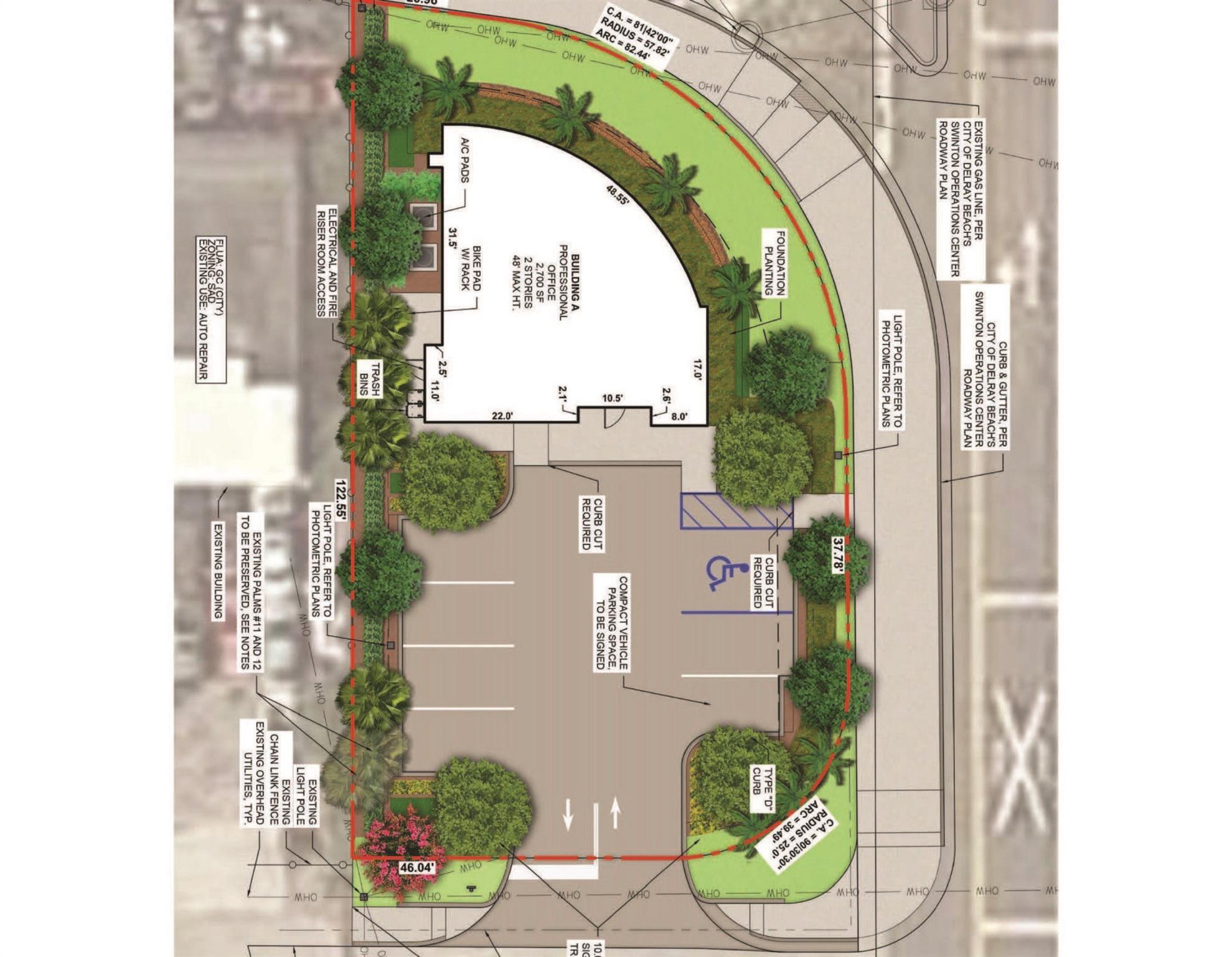 The building in the rendering has been approved by the city to be built on this lot. Upon completion, it would be an ultra-modern, glass two story office building with elevator. The building would consist of 2,700 total square feet and 1,640 square feet of office space with 7 parking spaces. Heavy traffic and great visibility. Easy access to both the beach and I-95. Price is for the lot only.Buyer will still need to obtain working drawings. Seller Concessions.