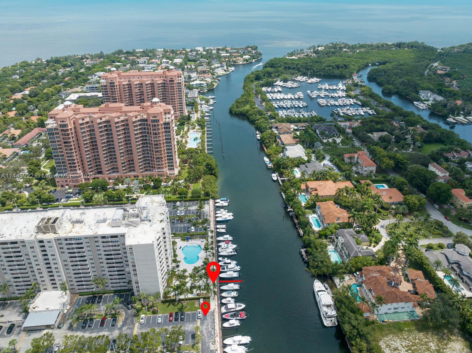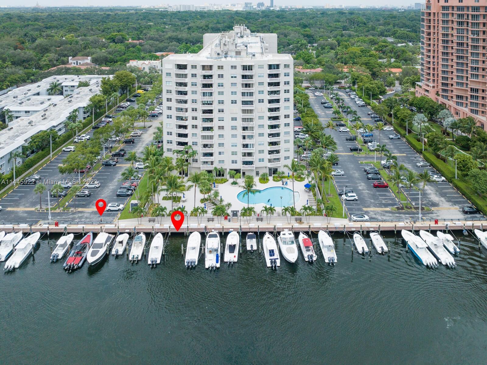 "Seas the Day" with this one of a kind rarely available deeded boat slip & adjacent parking space. 0ne of the most desirable and sought after South Coral Gables locations at Gables Waterway Towers. This boat slip measures max 42 ft X 13 with boat box. 24/7 security w fob entry to parking space, pool, bathrooms & gym. Each slip has its own FPL electrical outlet and water for personal usage. New pilings in 2022 and updated electric. This is one of the few buildings that allows you to own a deeded slip without owning a residence in the building. Gables Waterway deep canal, just minutes to Biscayne Bay and open water with NO bridges. Boaters Paradise Found! Call us today!