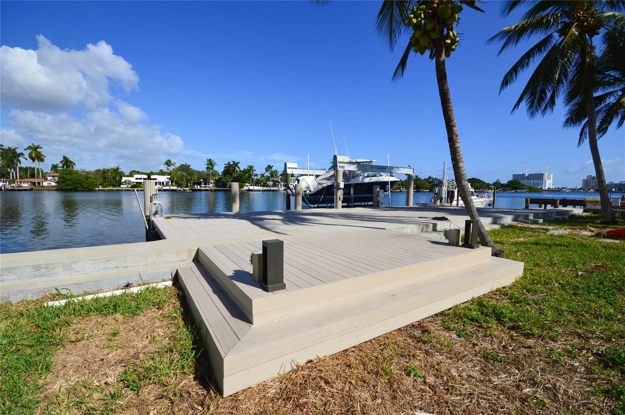 Discover the perfect canvas for your water front dreams. This buildable lot with plans included boasts 100 ft of intracoastal frontage, a refreshing breeze, and panoramic views. The new seawall exceeds NAVD88 requirements, ensuring durability and resilience. The brand-new state of the art dock is complete with a new 33,000lbs boat lift as well as jet ski lift and offers seamless access to the ocean. Here you will also find modern convenience with digital controls for Wi-Fi and lights, allowing you to customize your waterfront experience. Enhance your evenings with enchanting underwater lights. With electricity and water already extended to the dock, imagine the ease of coastal living. This corner lot, spanning 233 ft deep provides a unique opportunity to craft your coastal masterpiece.