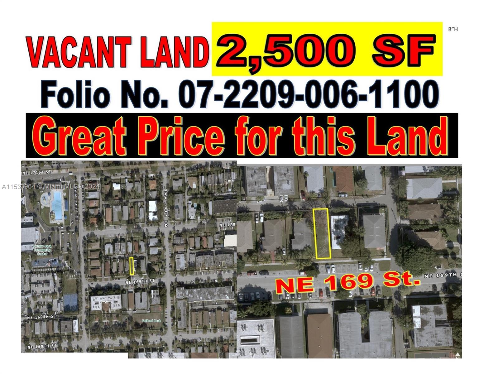 FOR SALE 2,500 SF VACANT LAND IN NORTH MIAMI BEACH FOR $126,000 GREAT PRICE FOR THIS LAND EXCELLENT LOCATION AND PRICE. LAND OF 2,500 SF, OPPORTUNITY TO BUY THIS LAND FOR A VERY AFFORDABLE PRICE BUYER MUST DO THEIR OWN DUE DILIGENCE, LAND SOLD AS IS, GREAT PRICE.